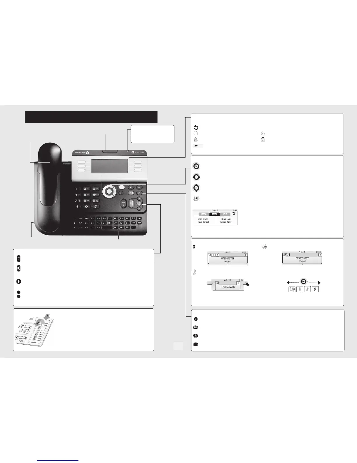 Contains several lines and pages providing information on calls and the features accessible via the 10 keys associated with the words on the