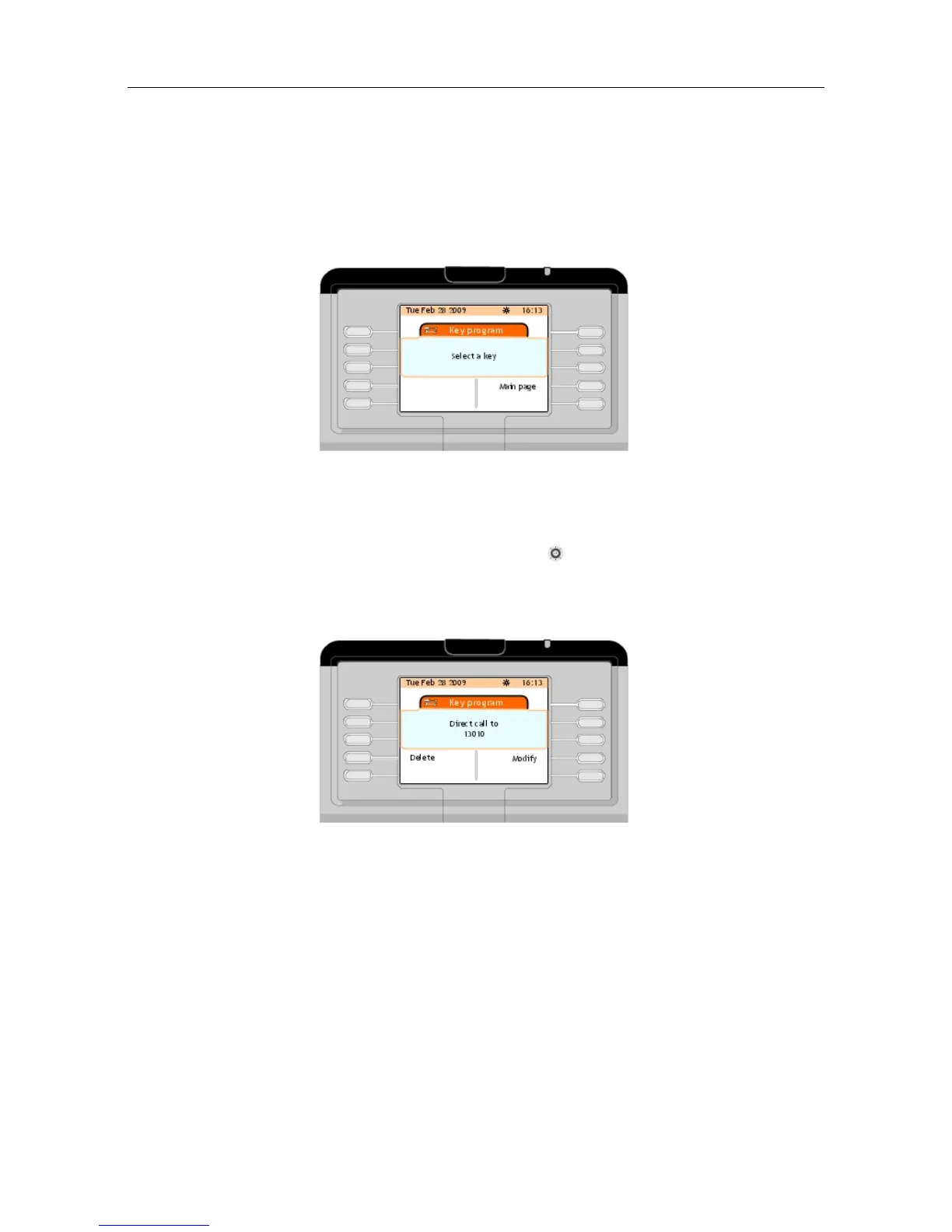 1. In the Menu page, navigate to: Settings -> Phone -> Key program