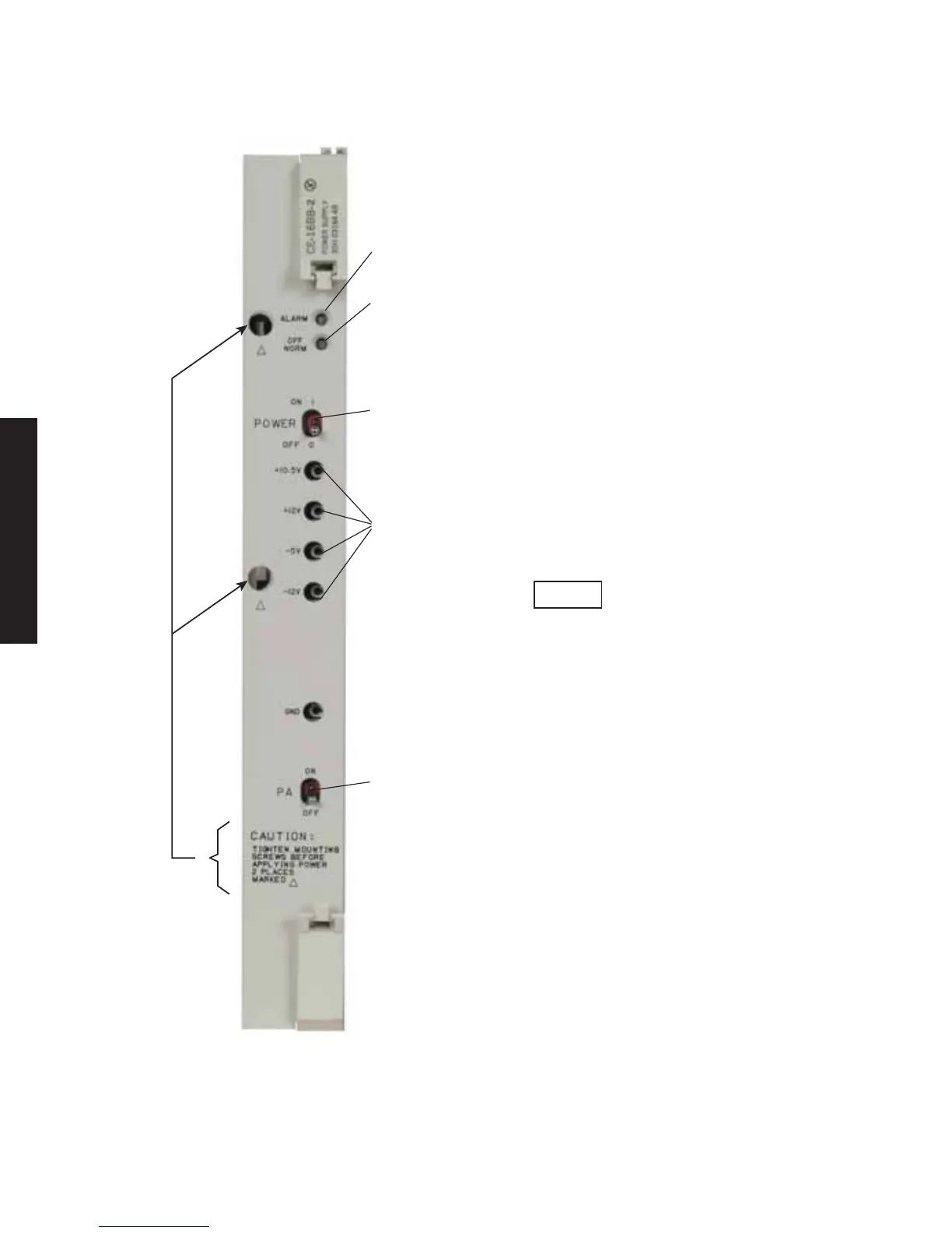Figure 2-8 CE-16BB Power Supply Controls, Indicators, Test Points, and Connectors (Sheet 1 of 2)