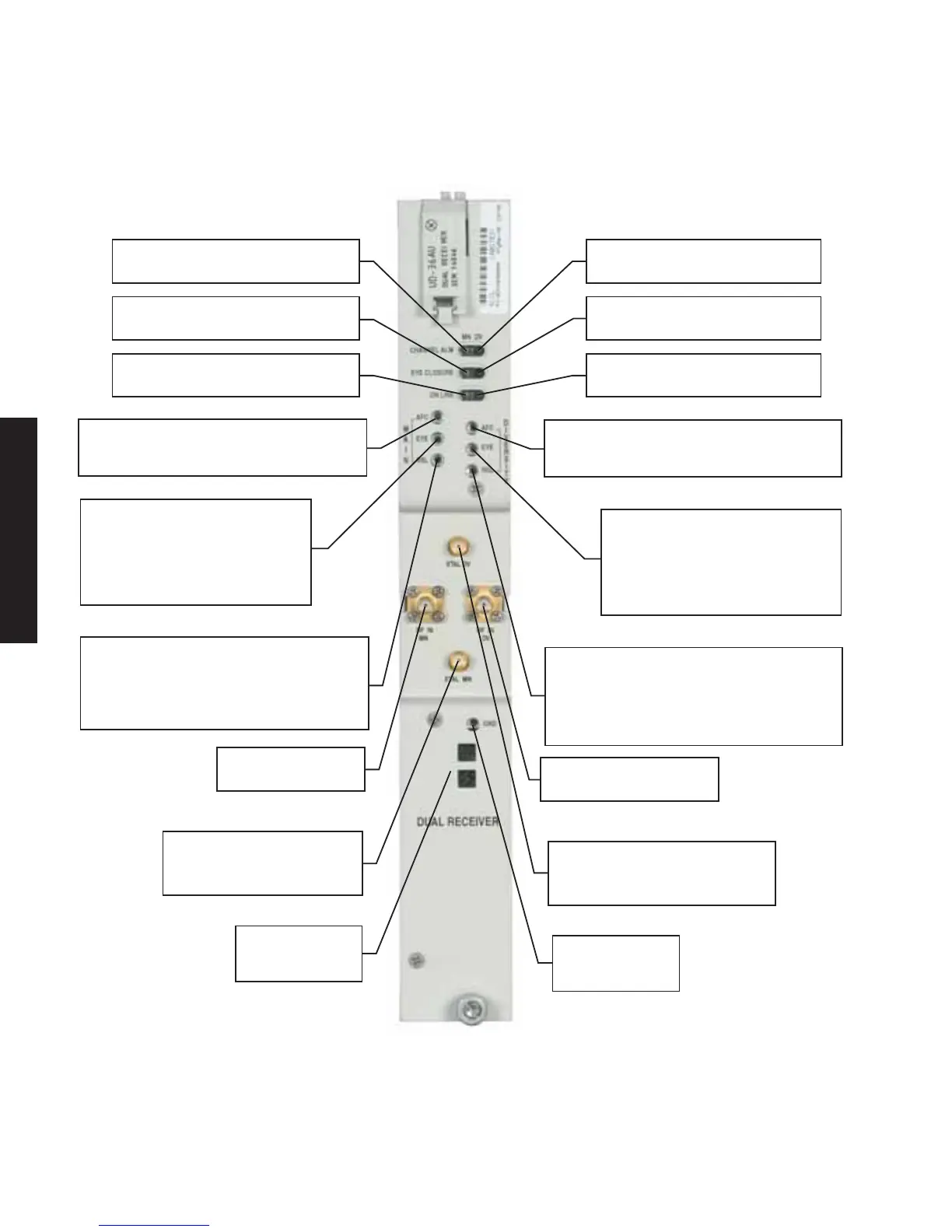 Figure 2-15 UD 36( ) Dual Receiver Controls & Indicators, Test Points and Connectors