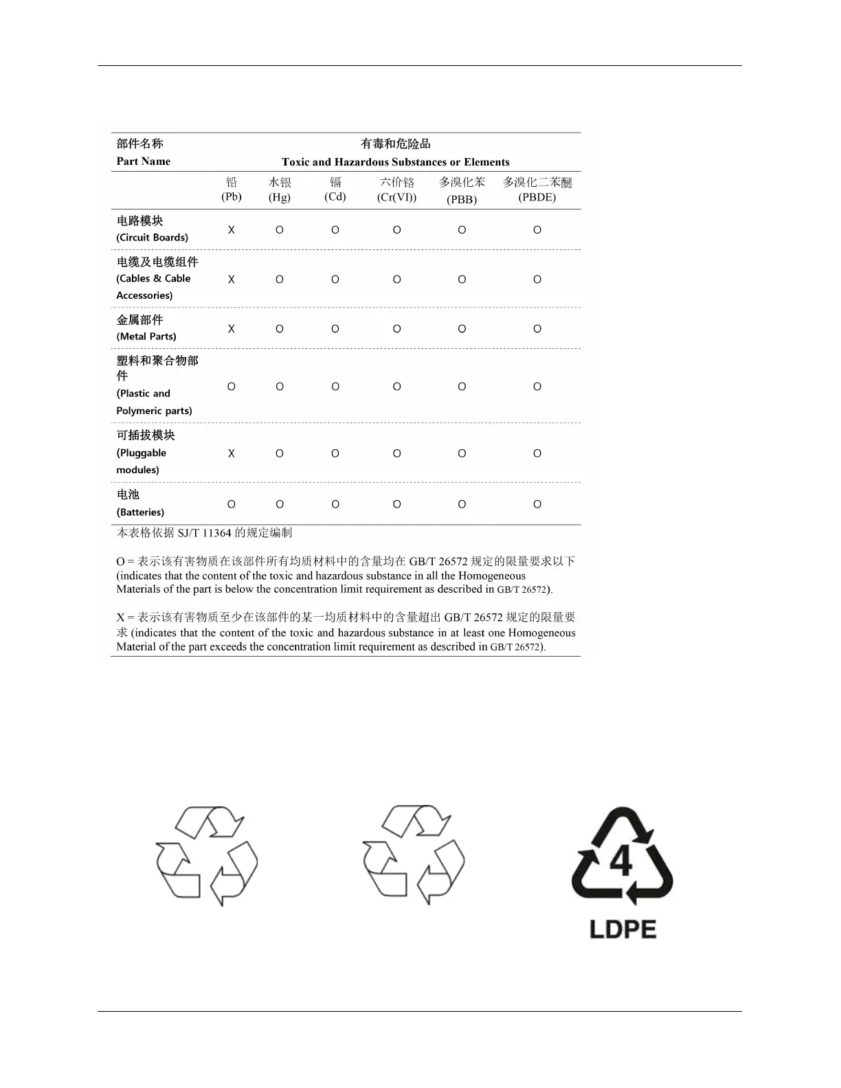 China RoHS: Hazardous Substance Table