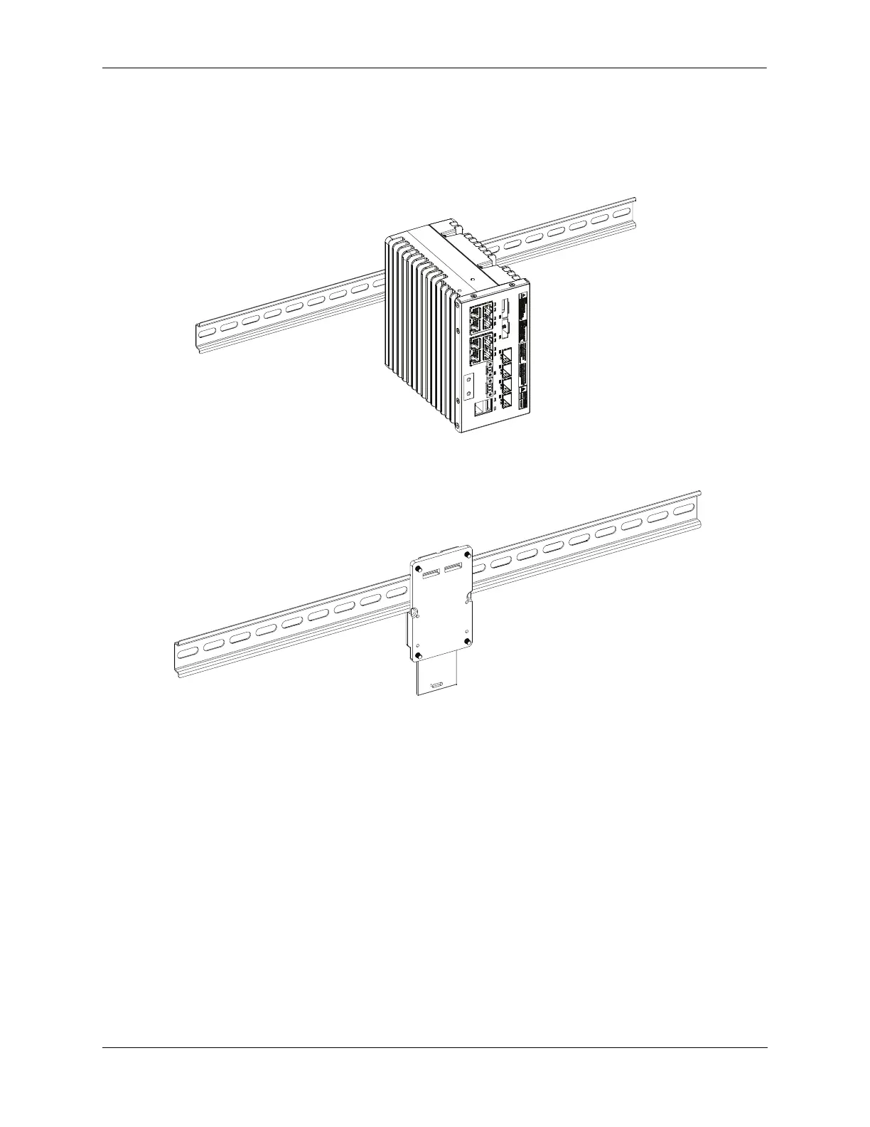 • Hook the top of the DIN rail clip over the top of the DIN rail.