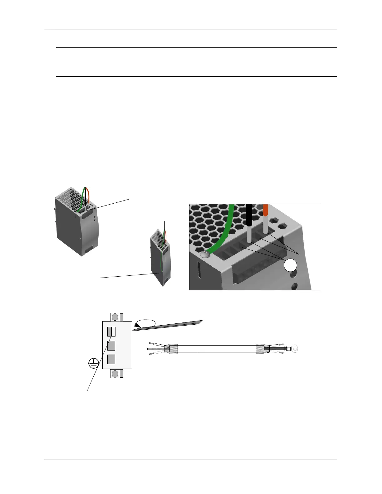 4 Secure the remaining ground wire to the power supply using the supplied attachment screw. Insert the