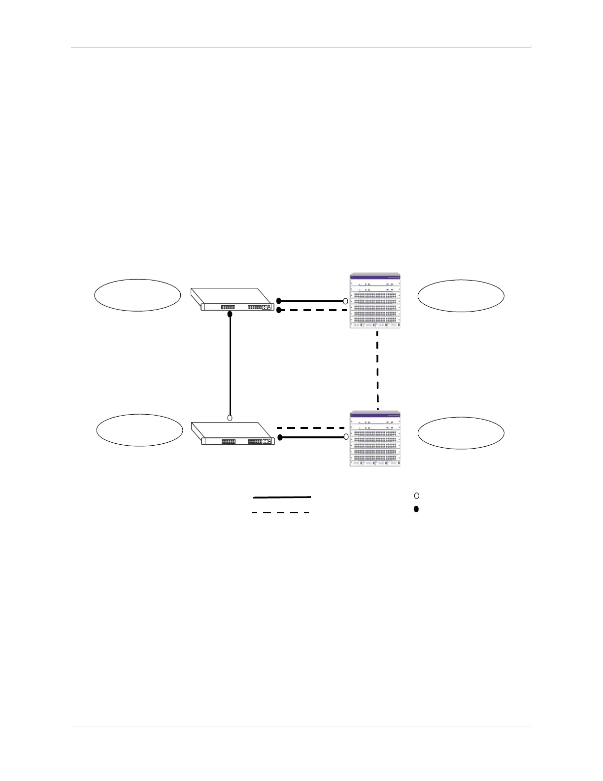 The following diagram shows a four-switch network configuration with an active Spanning Tree topology,