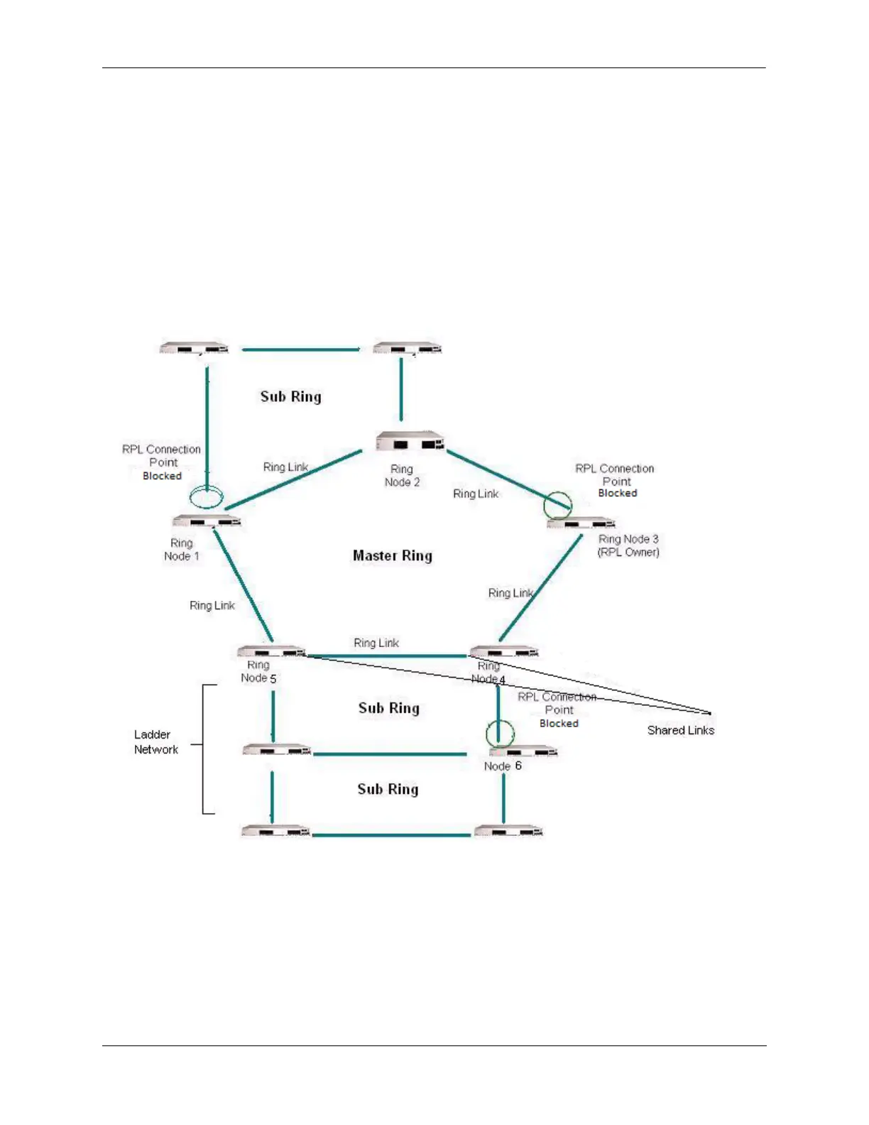 nodes, interconnected shared links, master rings and sub-rings. Multiple sub-tending rings are supported