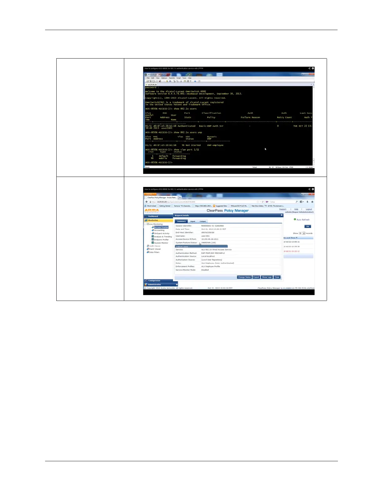 2 Configure MAC authentication for ClearPass RADIUS on an OmniSwitch as follows: