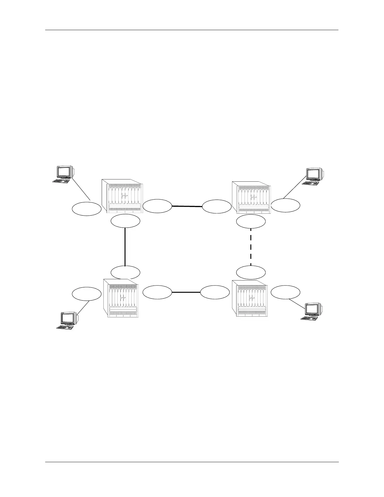 The connection between Switch C and D is shown with a broken line because the ports that provide this