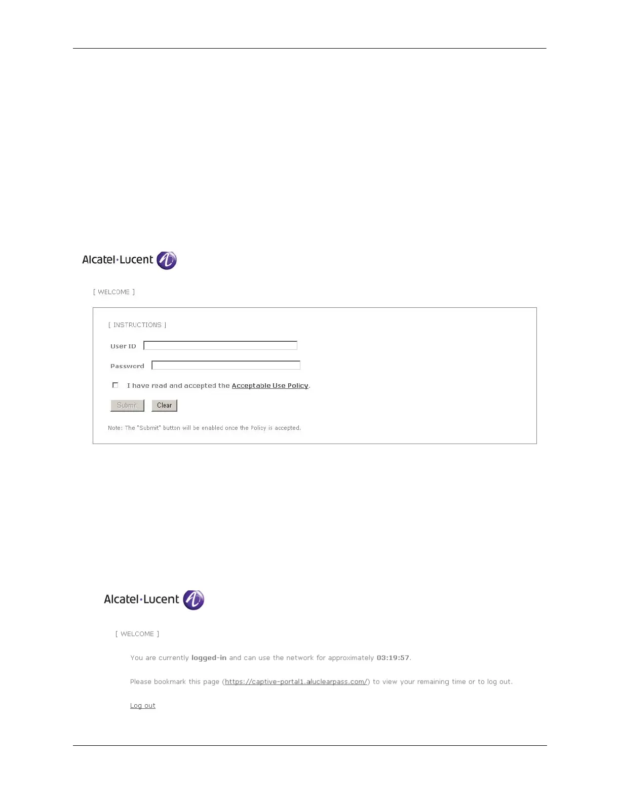 5 Click the “Submit” button to login to the network. When the “Submit” button is clicked, Captive Portal