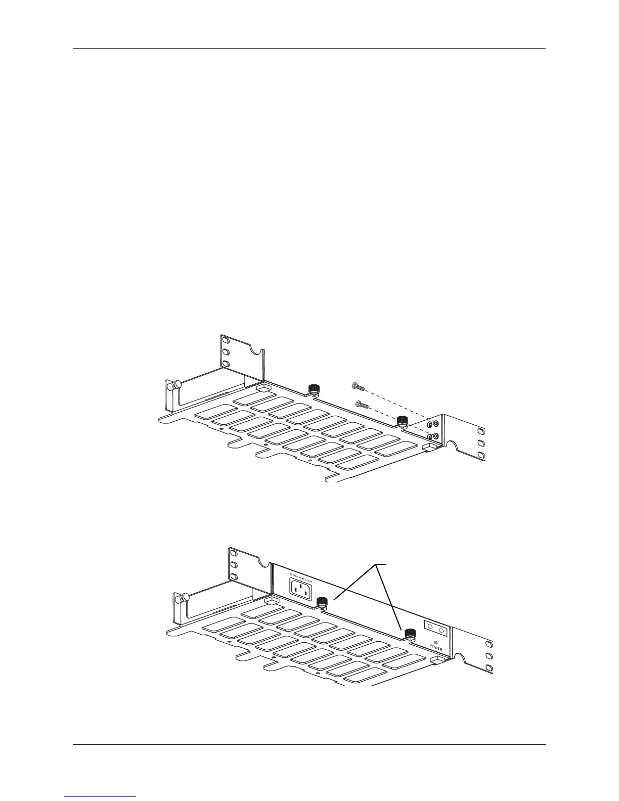 non-threaded holes from the inside of the power supply shelf and are then attached to the mounting brack-