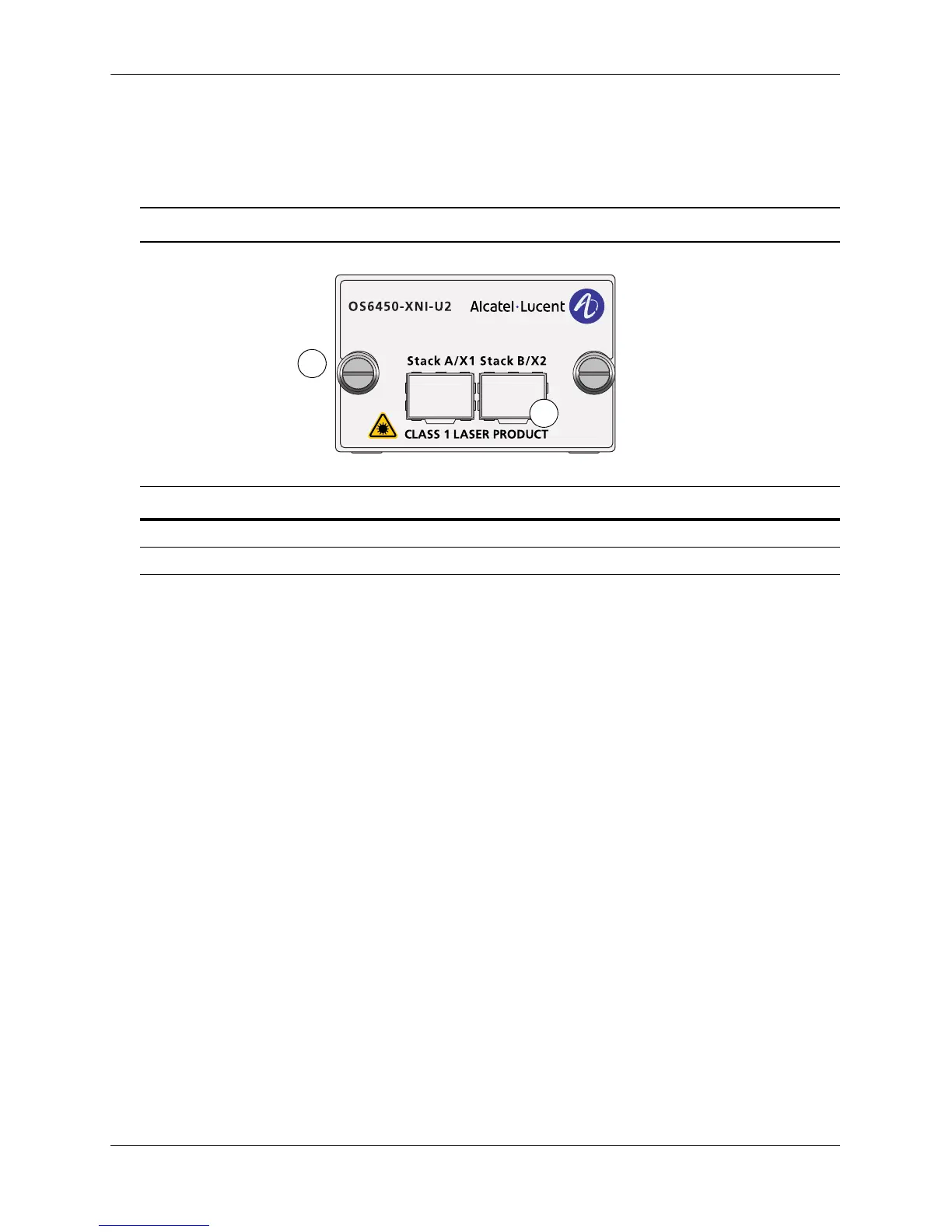 The OS6450-XNI-U2 is an optional 10 Gigabit stacking module that supports two SFP+ 10 Gigabit ports.