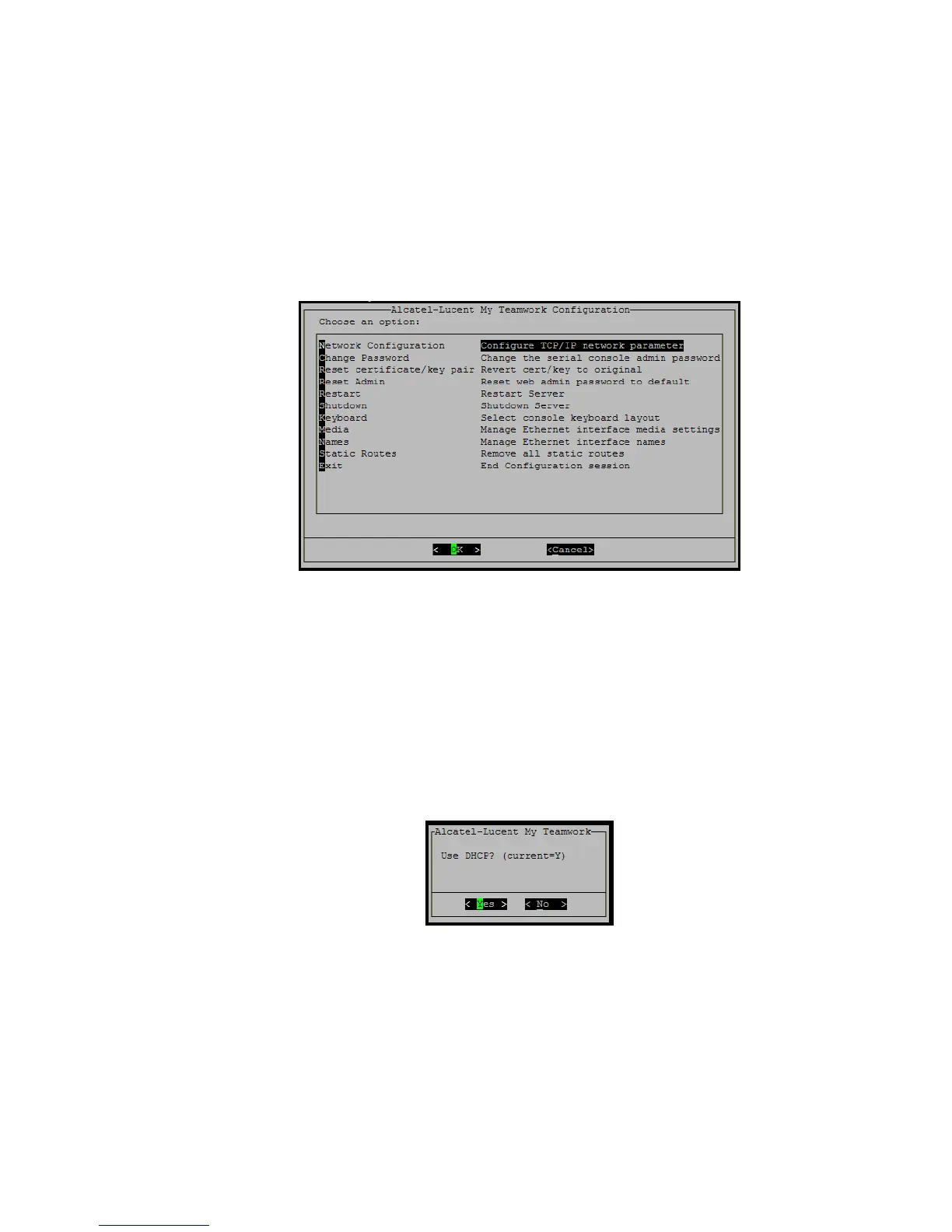 c. Use DHCP appears. Select Yes or No and press Enter.