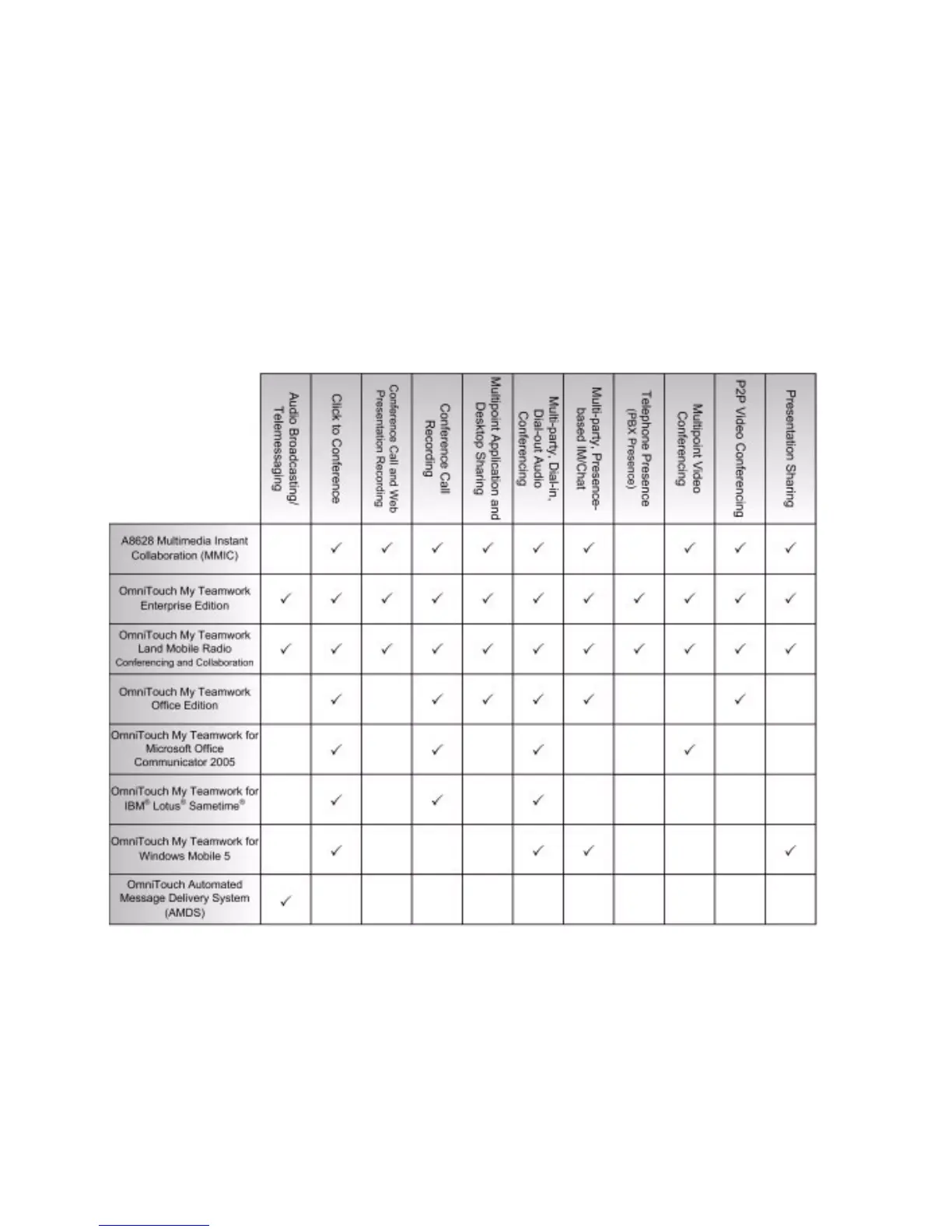 • Alcatel-Lucent OmniTouch My Teamwork for IBM® Lotus® Sametime®