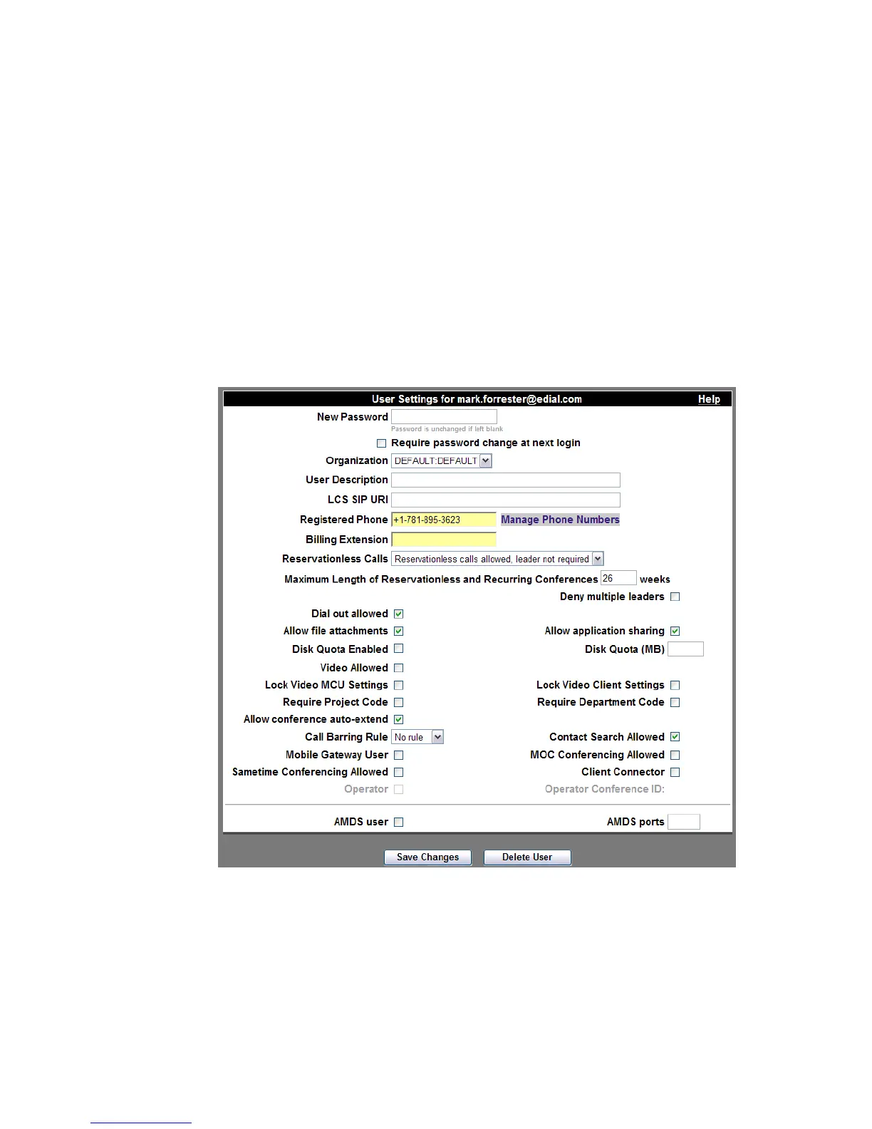 Click Manage User Settings as shown in Figure 4-15This selection will present the