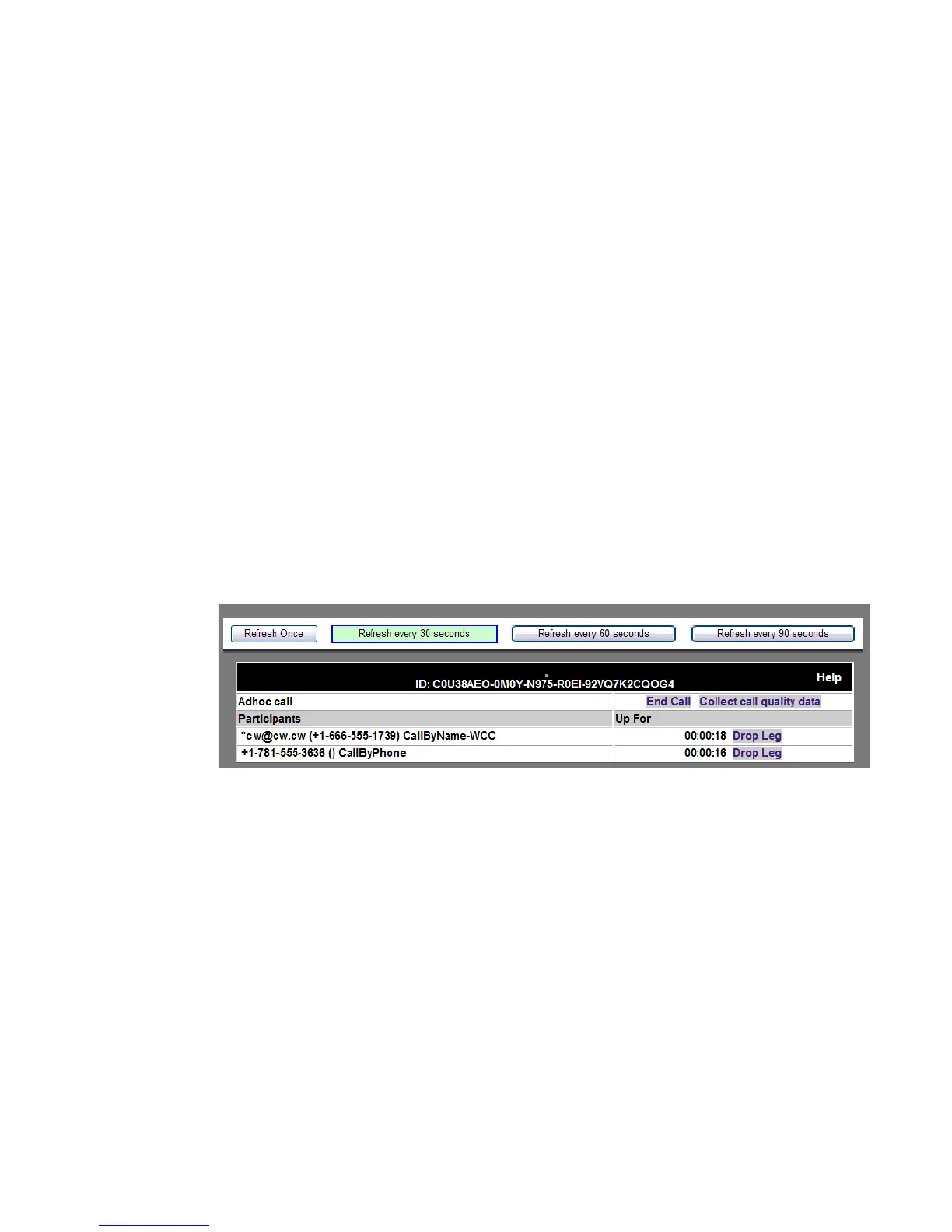 • Refresh Once – This creates a static ‘snapshot’ of the active calls at a moment in time.