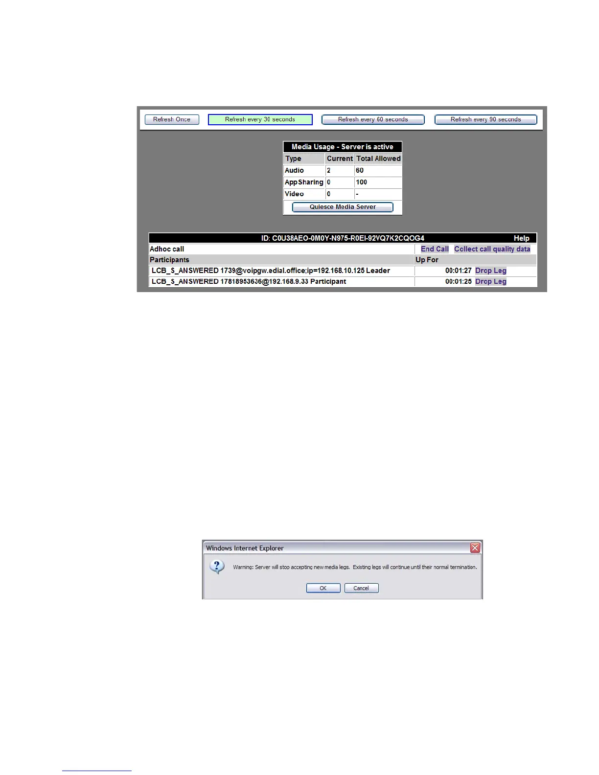 Figure 5-4 Quiesce Media Server Warning Dialog Box