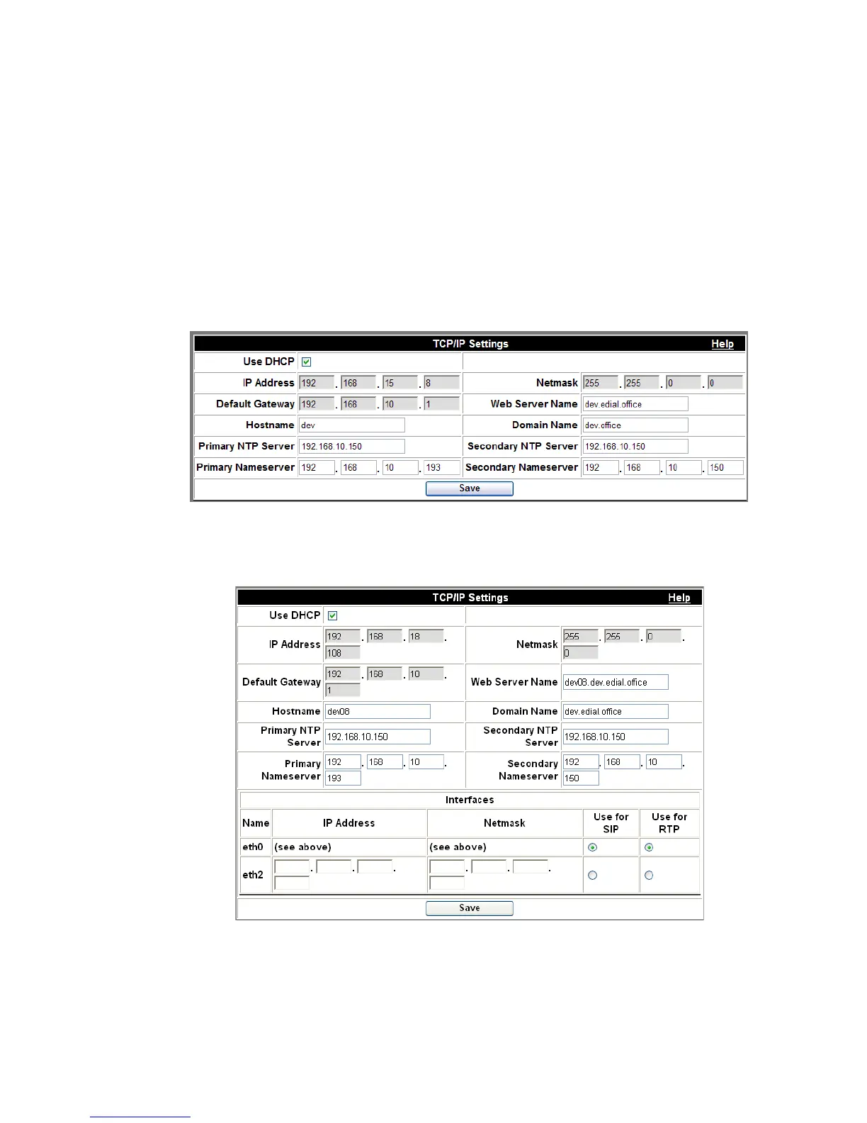 Figure 2-2 TCP/IP Settings Page with Eth0 and Eth01 Interfaces