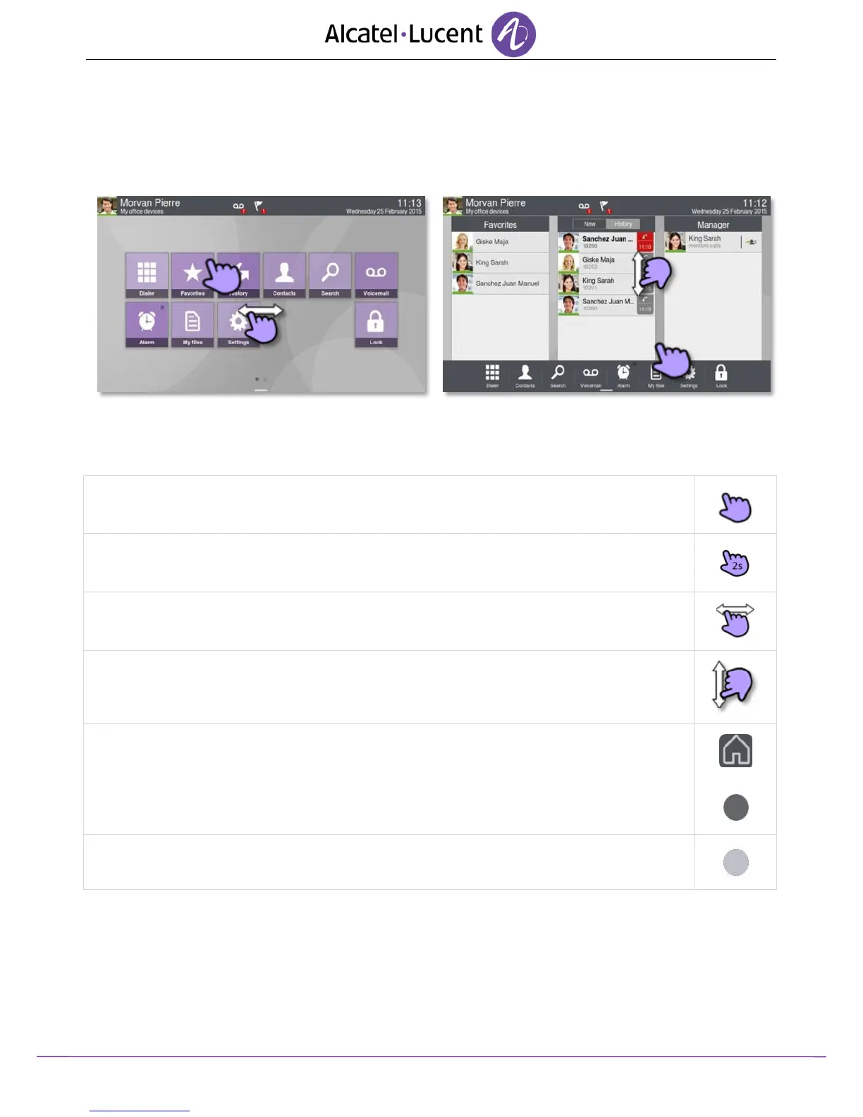 The phone set homepage can be viewed in standard or advanced mode.