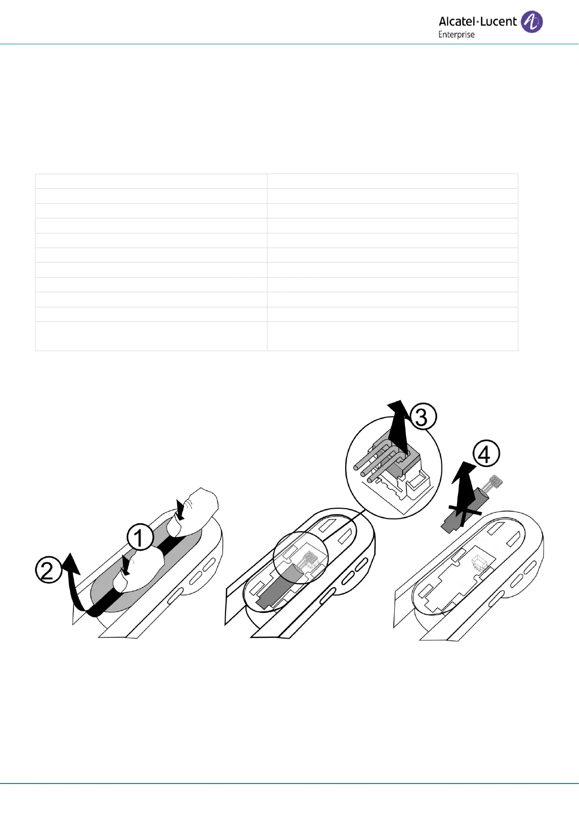 Alcatel-Lucent OPENTOUCH ALE-300 - Unboxing; Led; Installing or Replacing the Bluetooth Handset Battery