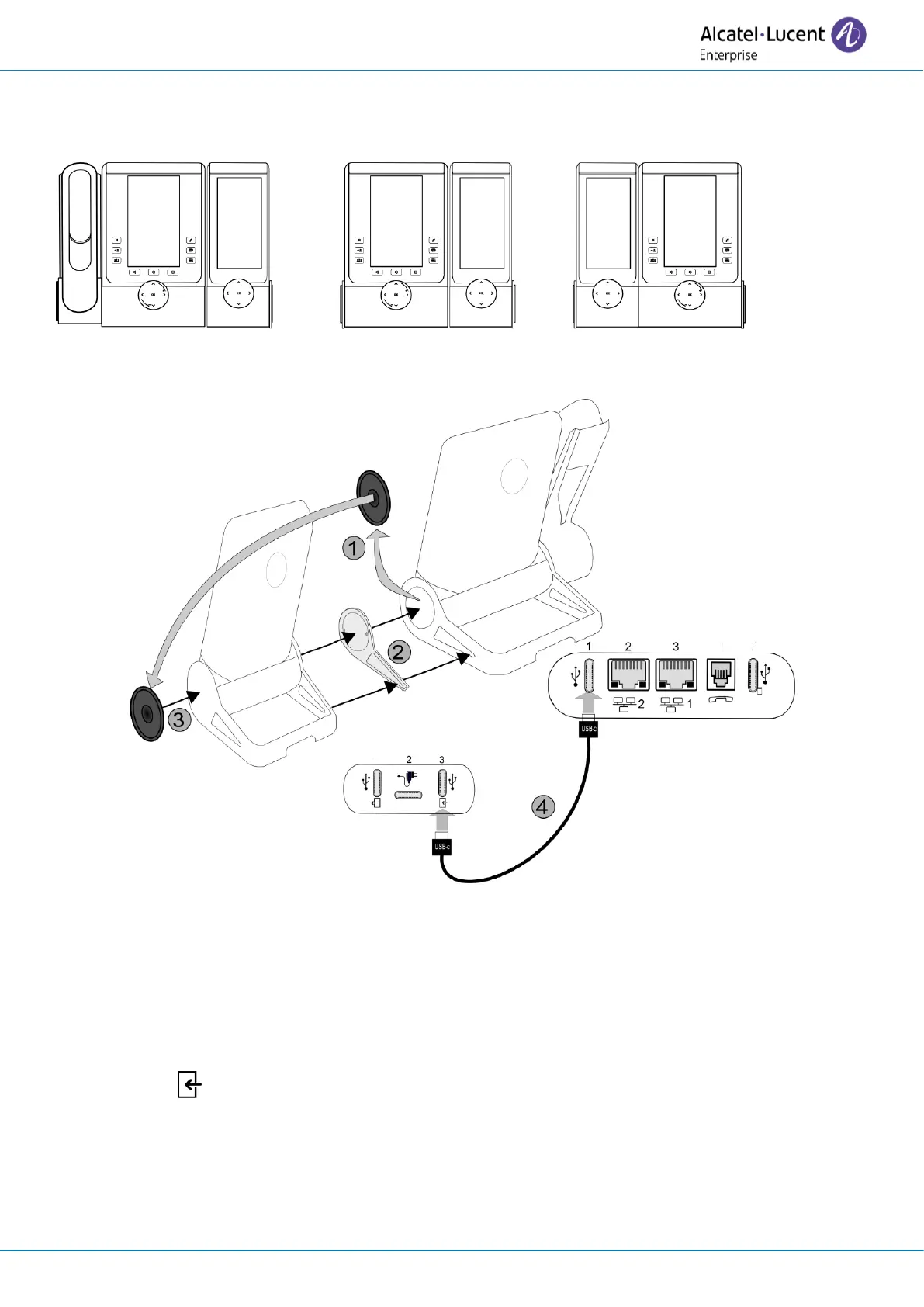 • Fix the add-on to the desk phone by using the provided foot clip.