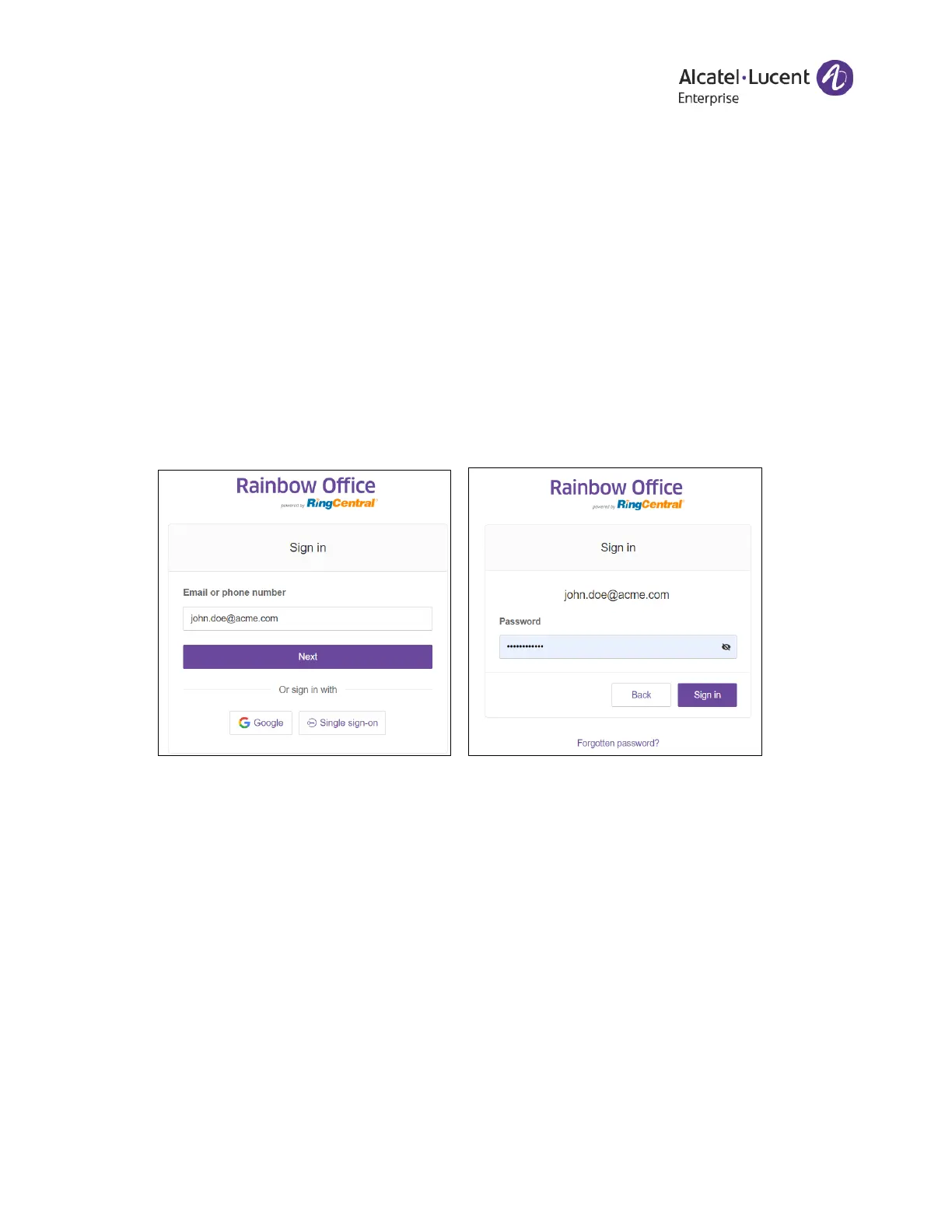 feature to log in to your Rainbow Office online account with Google.