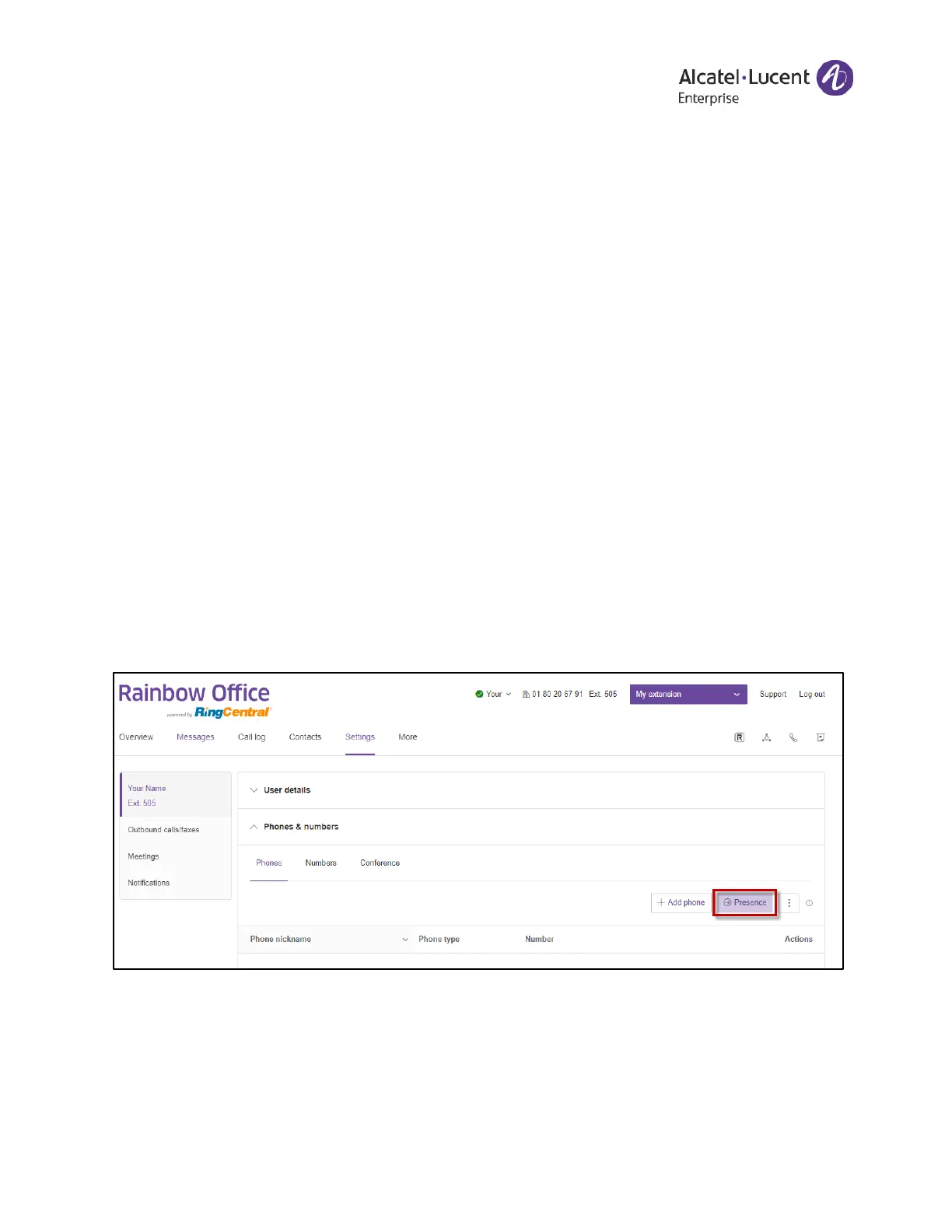 NOTE: If you use Rainbow Office Phone, the list of users under Appearance will automatically