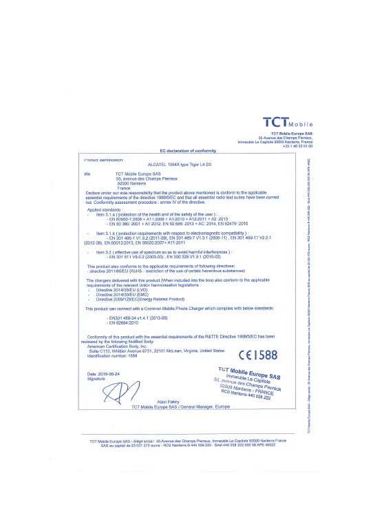 Alcatel 1054D - Regulatory Information