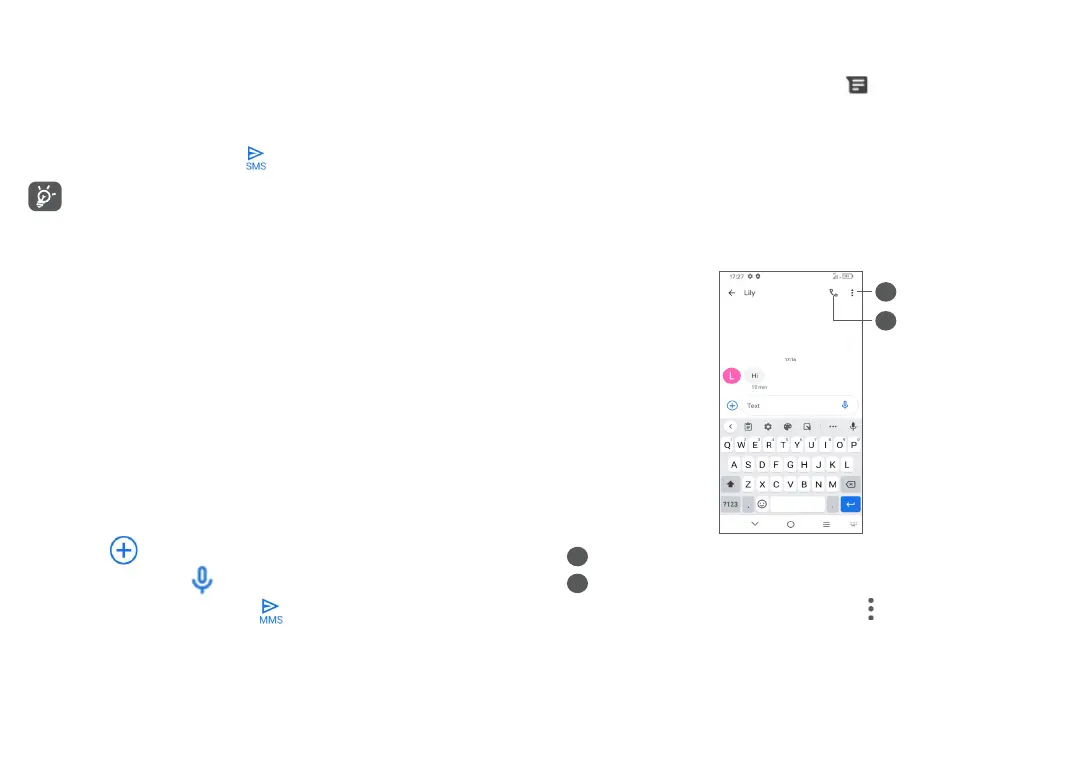• Touch the Te x t bar to enter the text of the message.