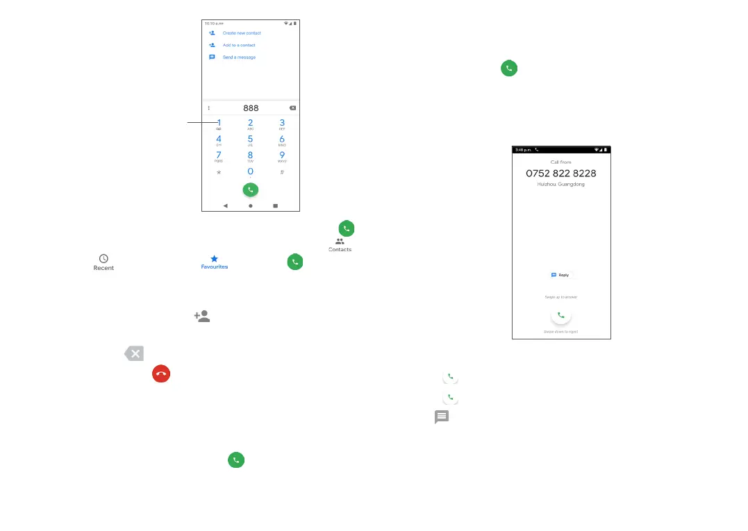 Recent calls , or Favourites , then tap to make