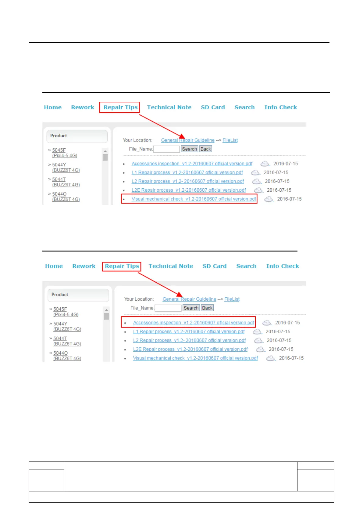 Please refer to <Visual mechanical check flow chart> in support website (CSS/RSH) for details.