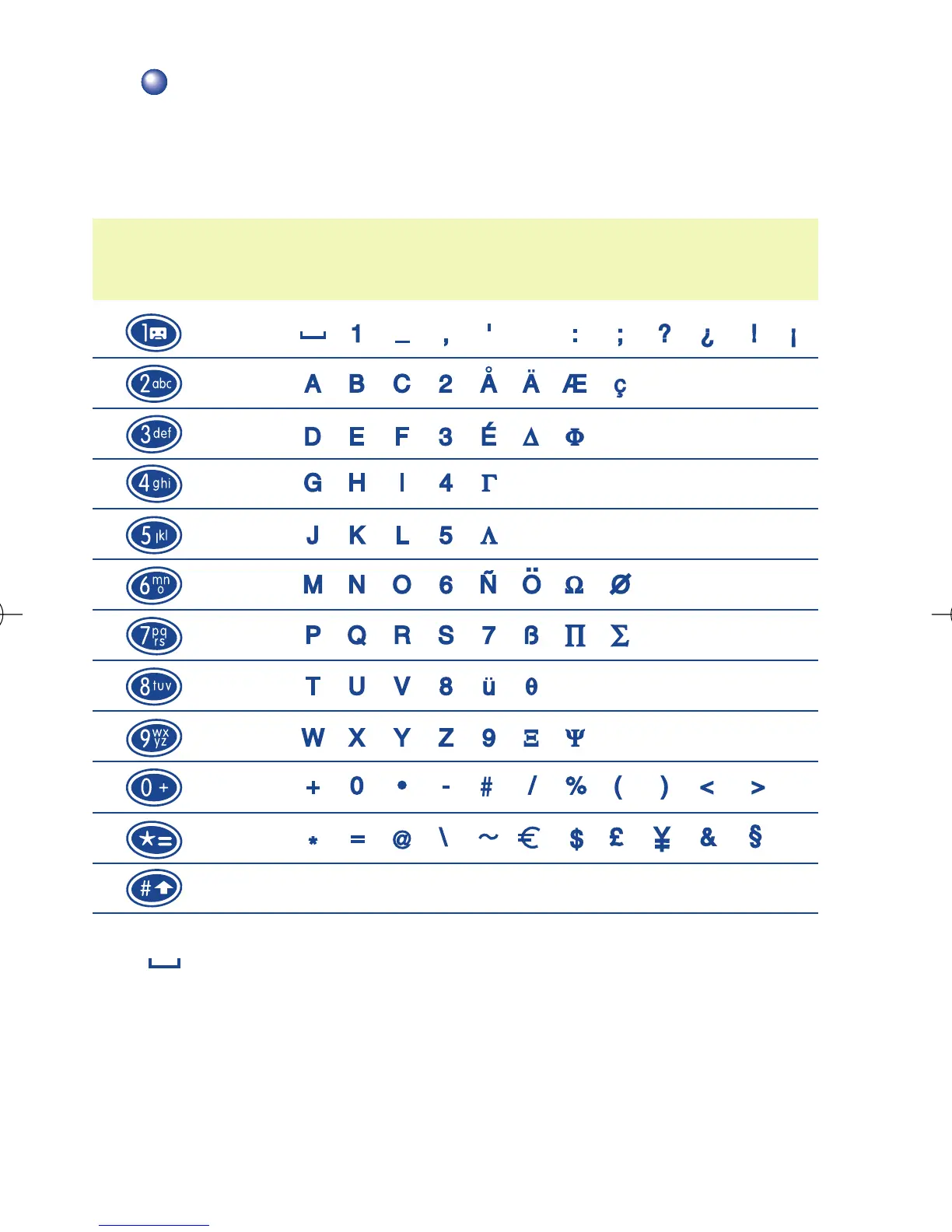 Key Number of keypresses to get character