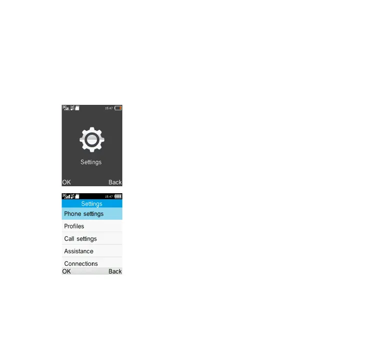 Settings\OK and access the function
