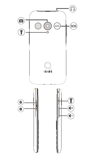 Alcatel 3085 - External Device Features; Camera and Speaker; SOS Button and Flashlight; Headphone Jack and Volume Controls