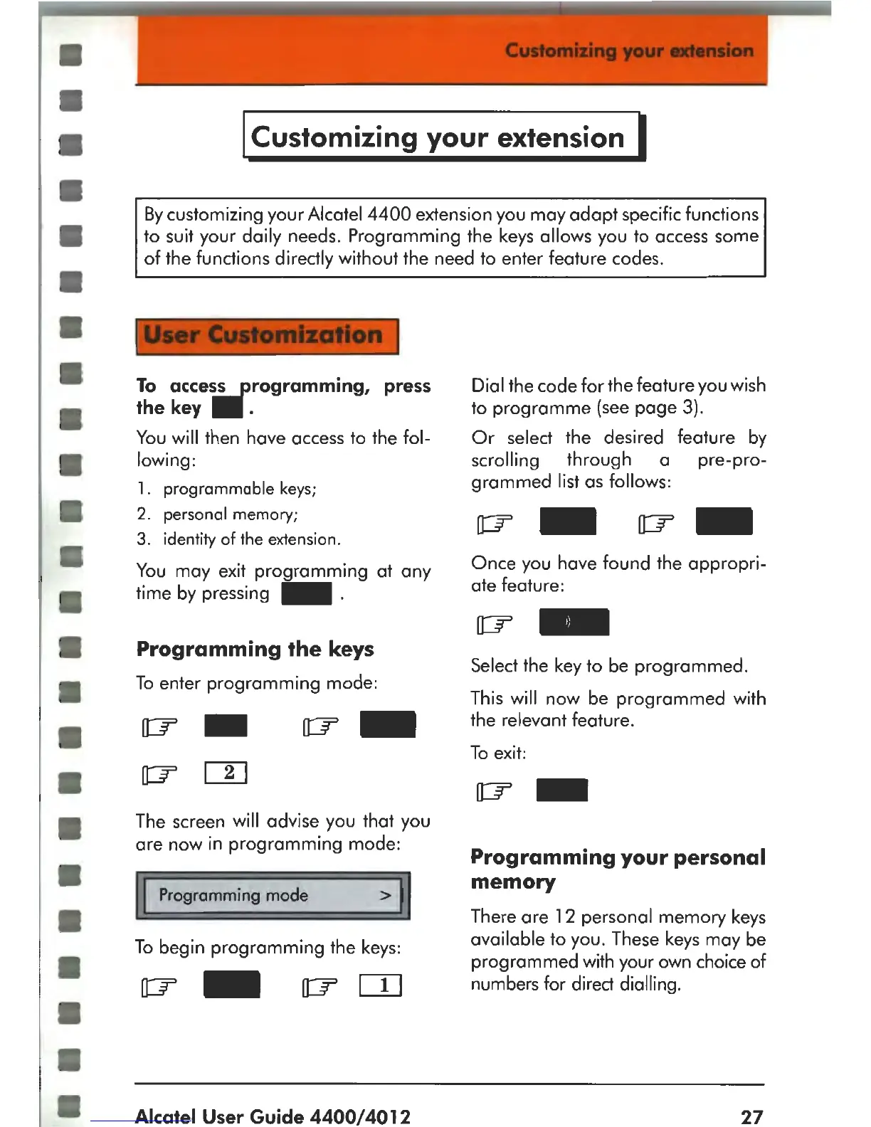 Alcatel 4012 - Customizing Your Extension; User Customization; Programming the keys