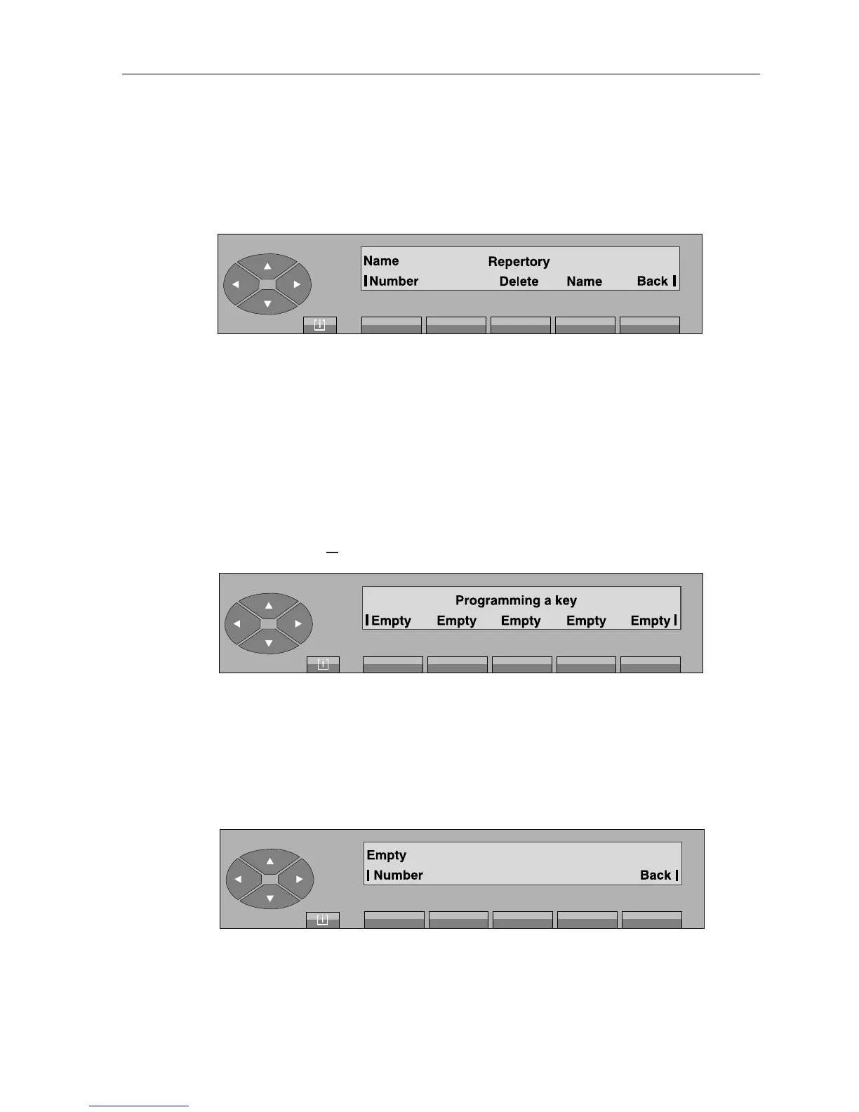 After pressing the key on the set or add-on module that the attendant wants to program, the screen
