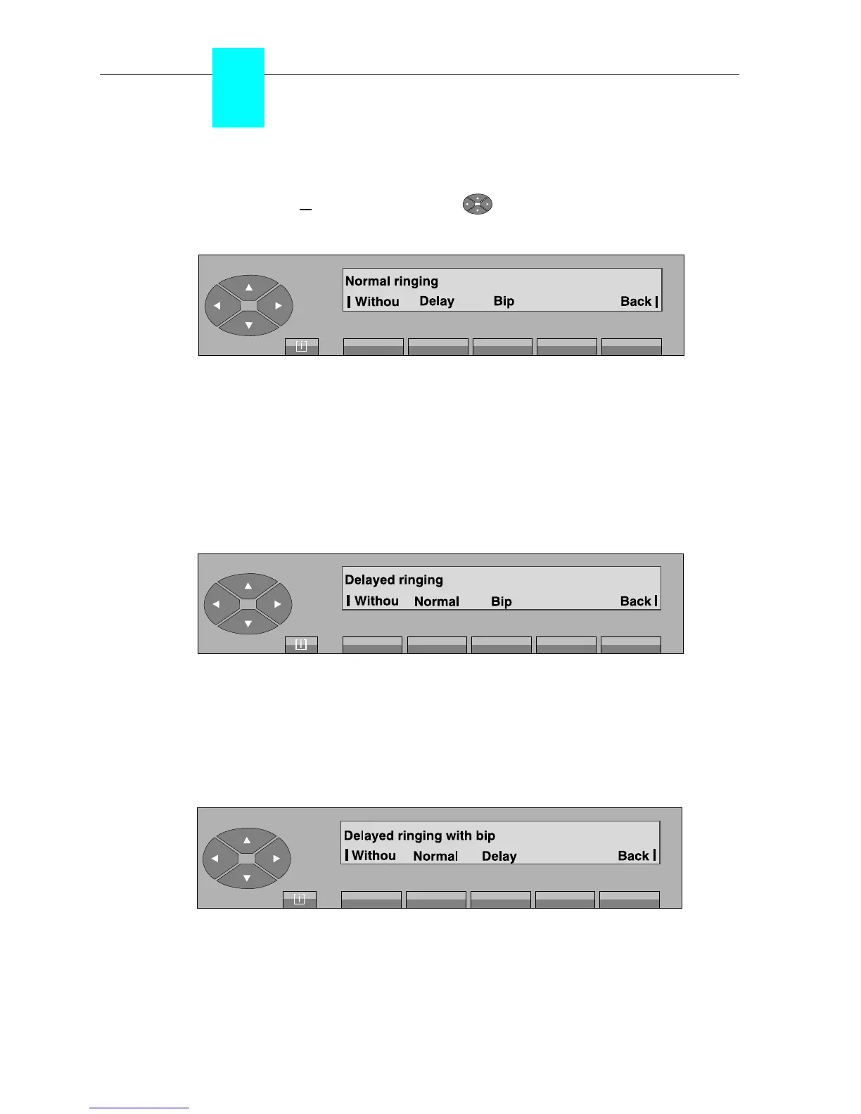 The ring on the attendant set is programmed in normal mode (ringing starts on presentation
