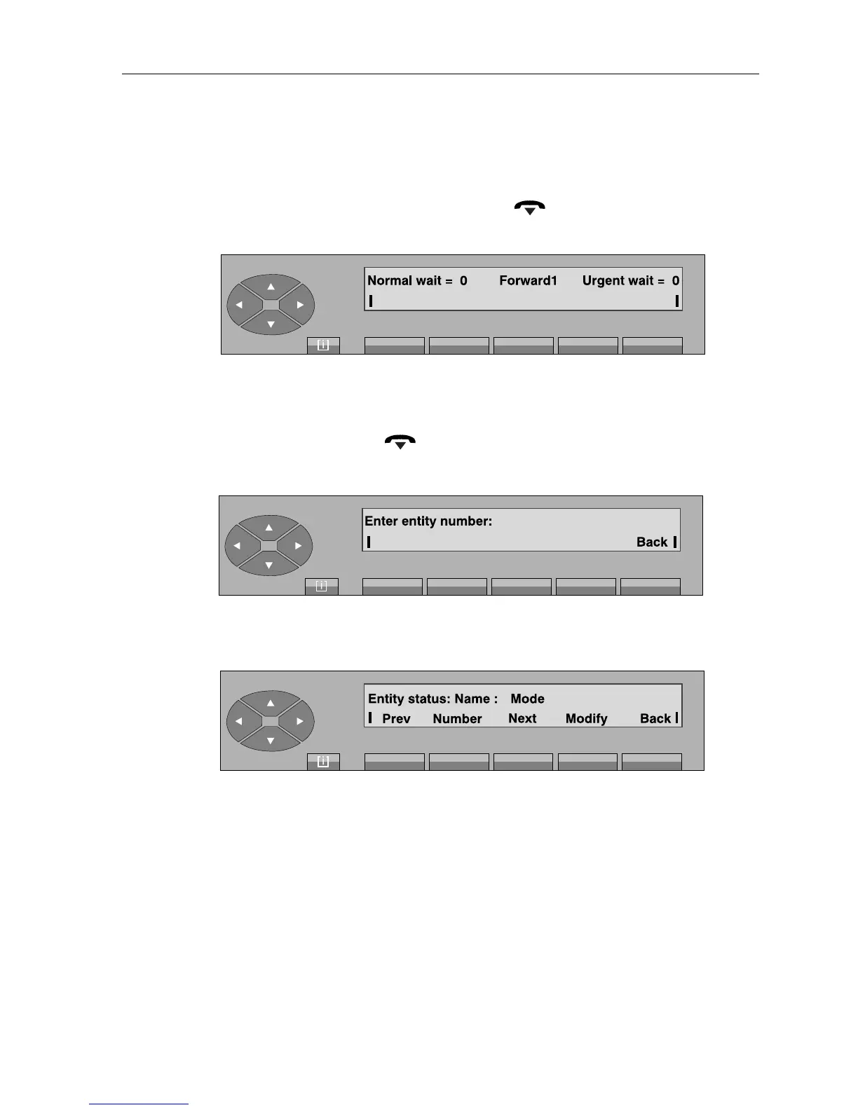 - On pressing the «Entity» key, the screen displays: