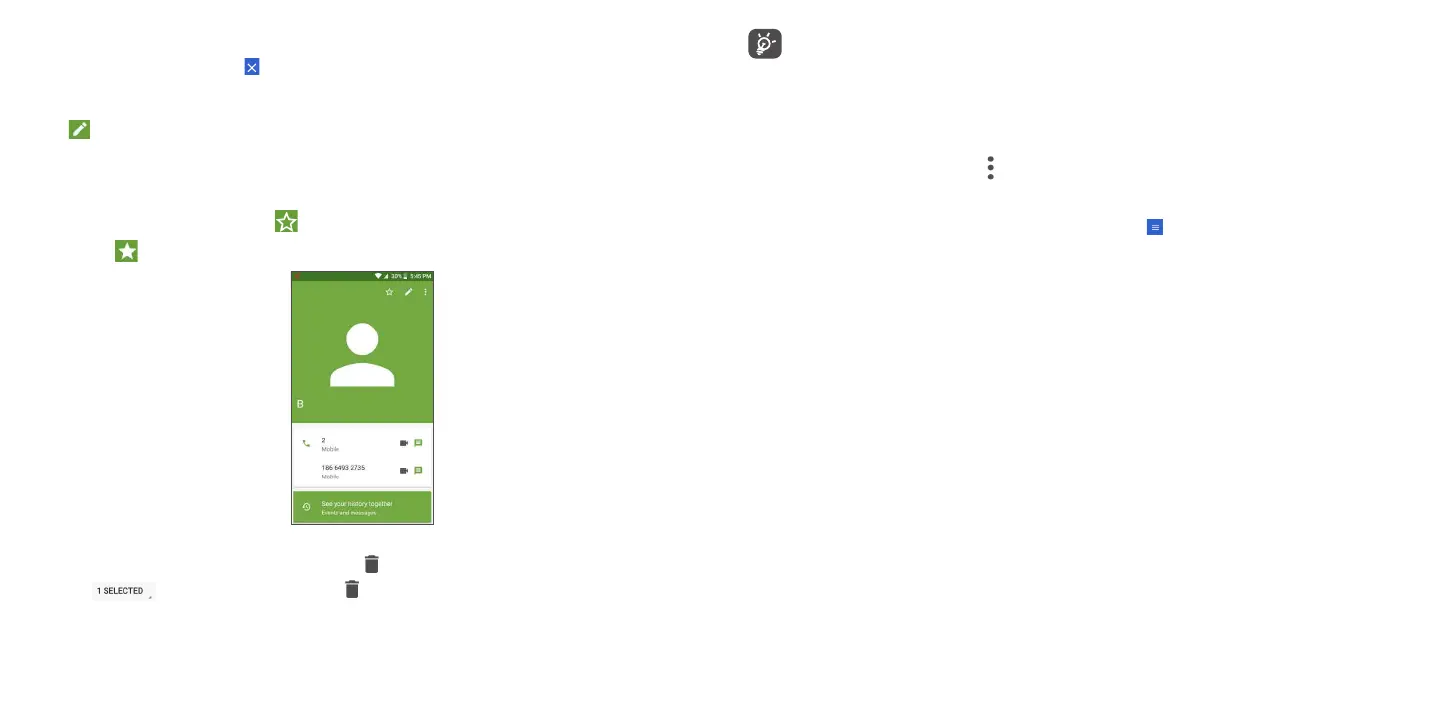 • Touch to select all contacts, then touch and confirm to delete all contacts.