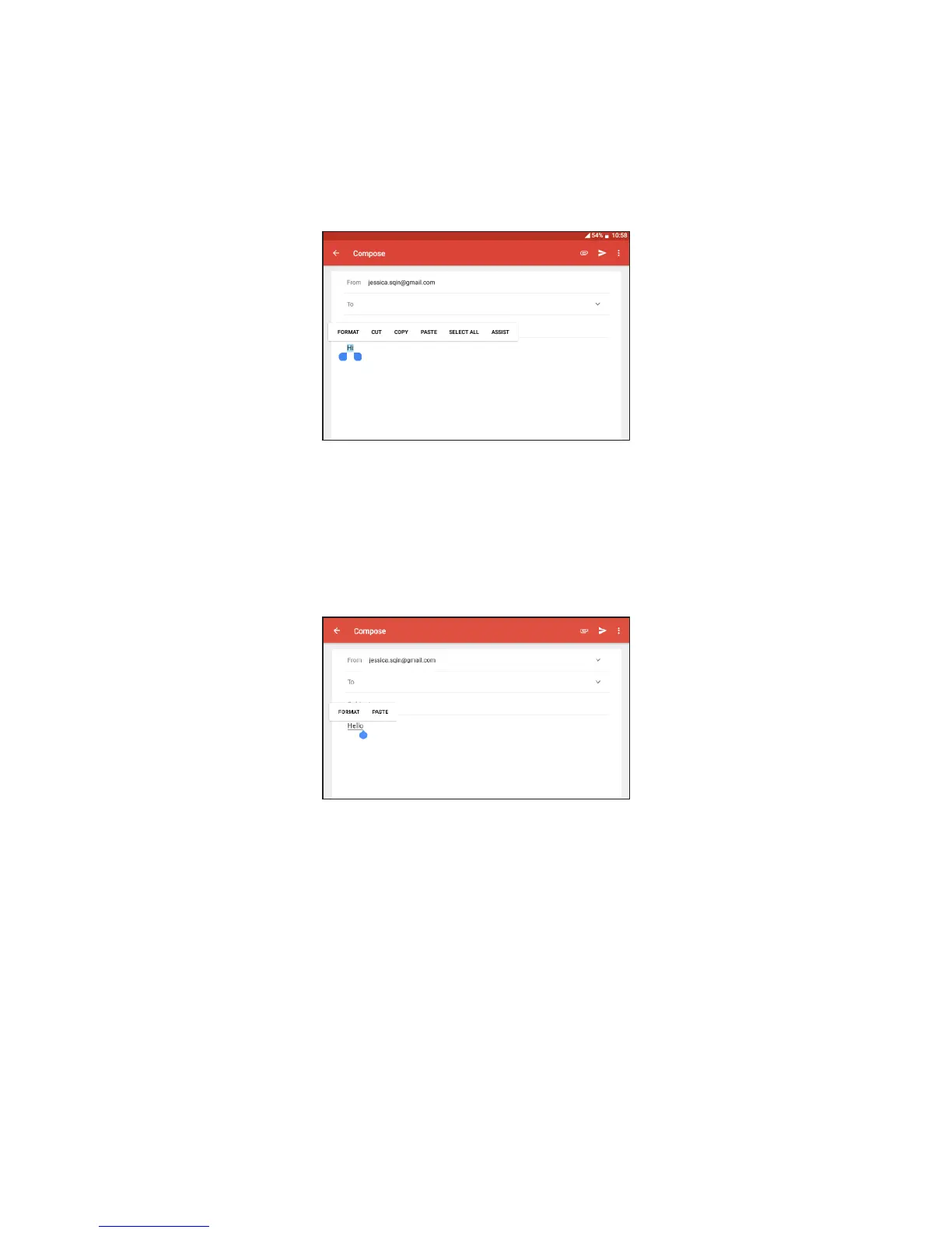 • Following options will show: FORMAT, CUT, COPY, SELECT ALL,