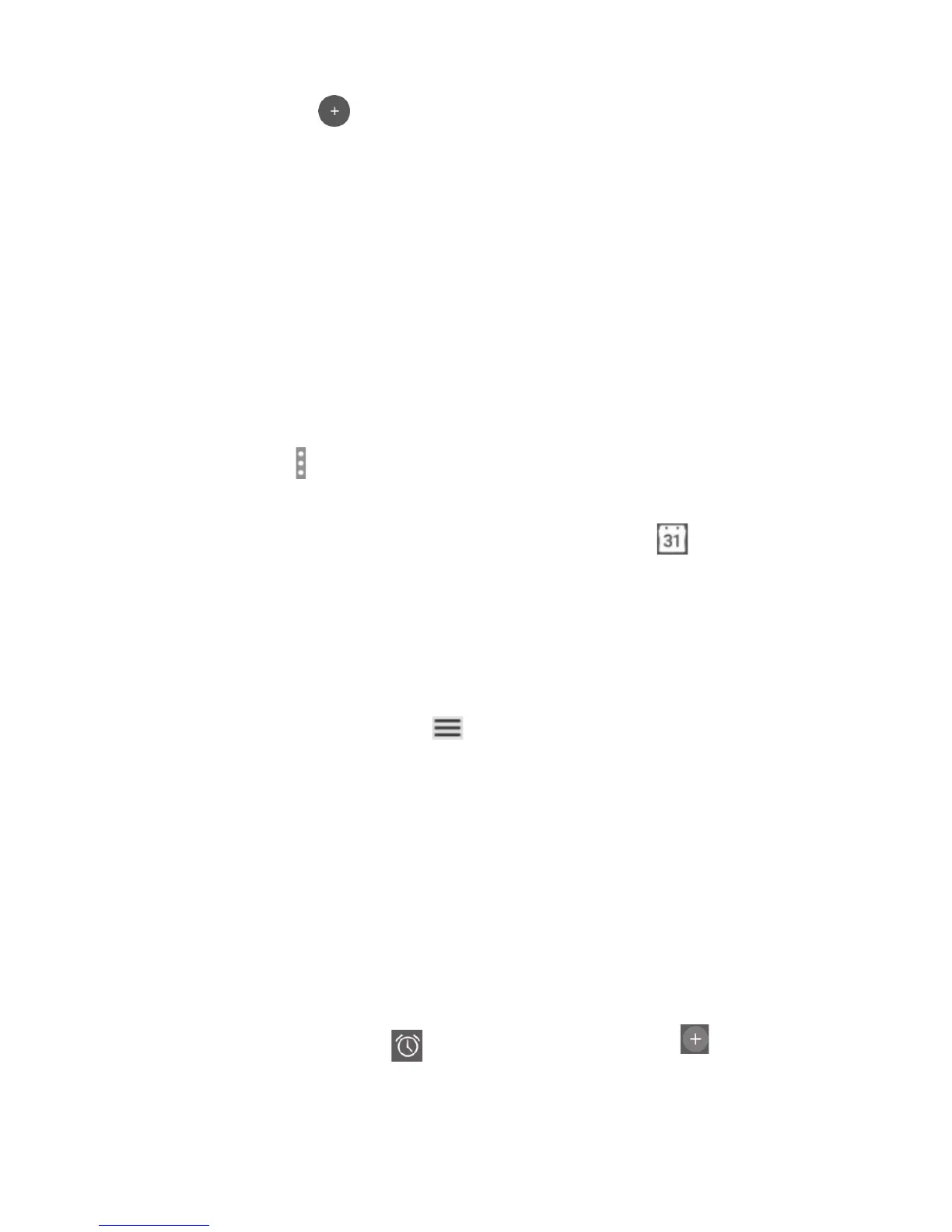 From Clock screen, touch to enter Alarm screen, touch to add a