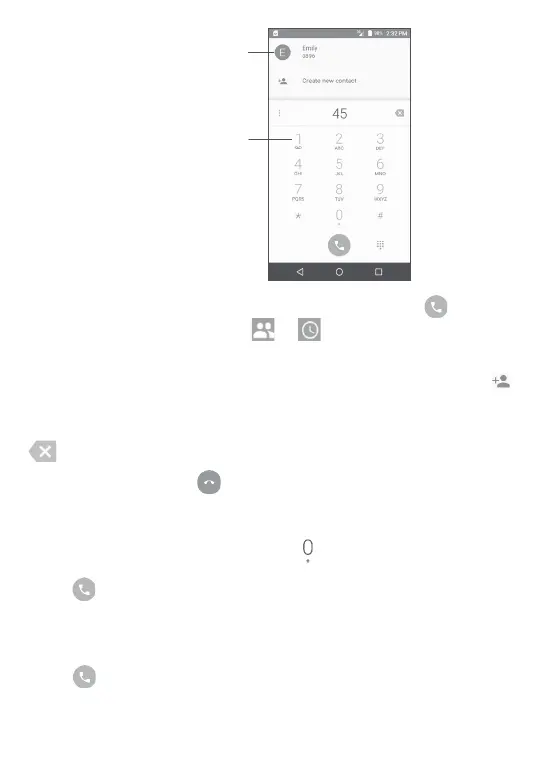To dial an international call, long press