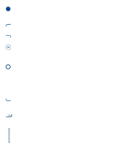 • Press: end a call, move backwards through Menus, return to Home screen