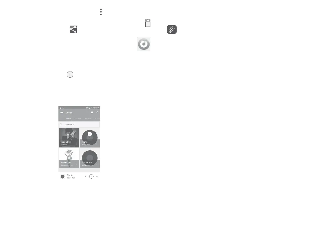 To play a music file, touch from the Home screen, then touch