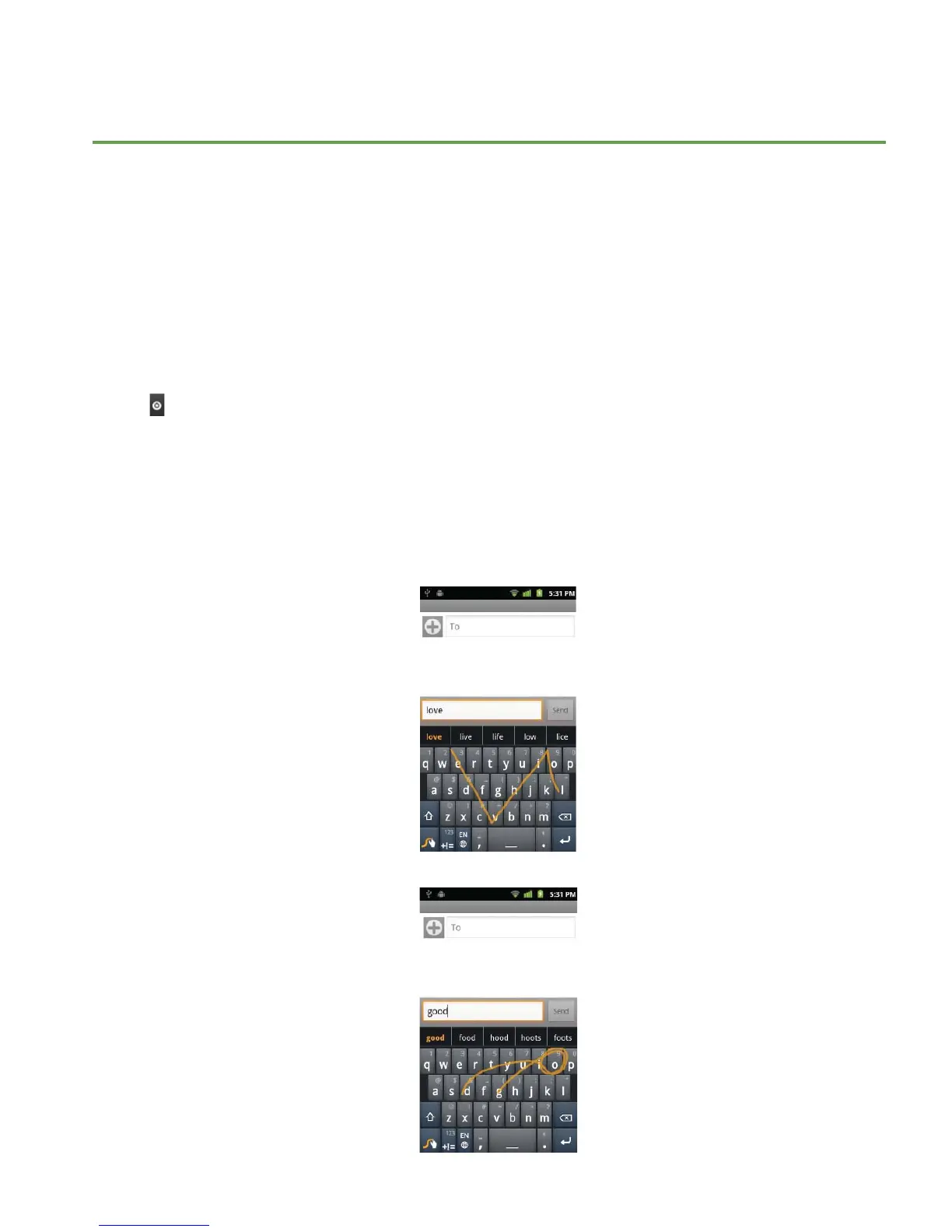 2. Place your nger on the key with the rst letter of the word and drag your nger to each subsequent letter without lifting