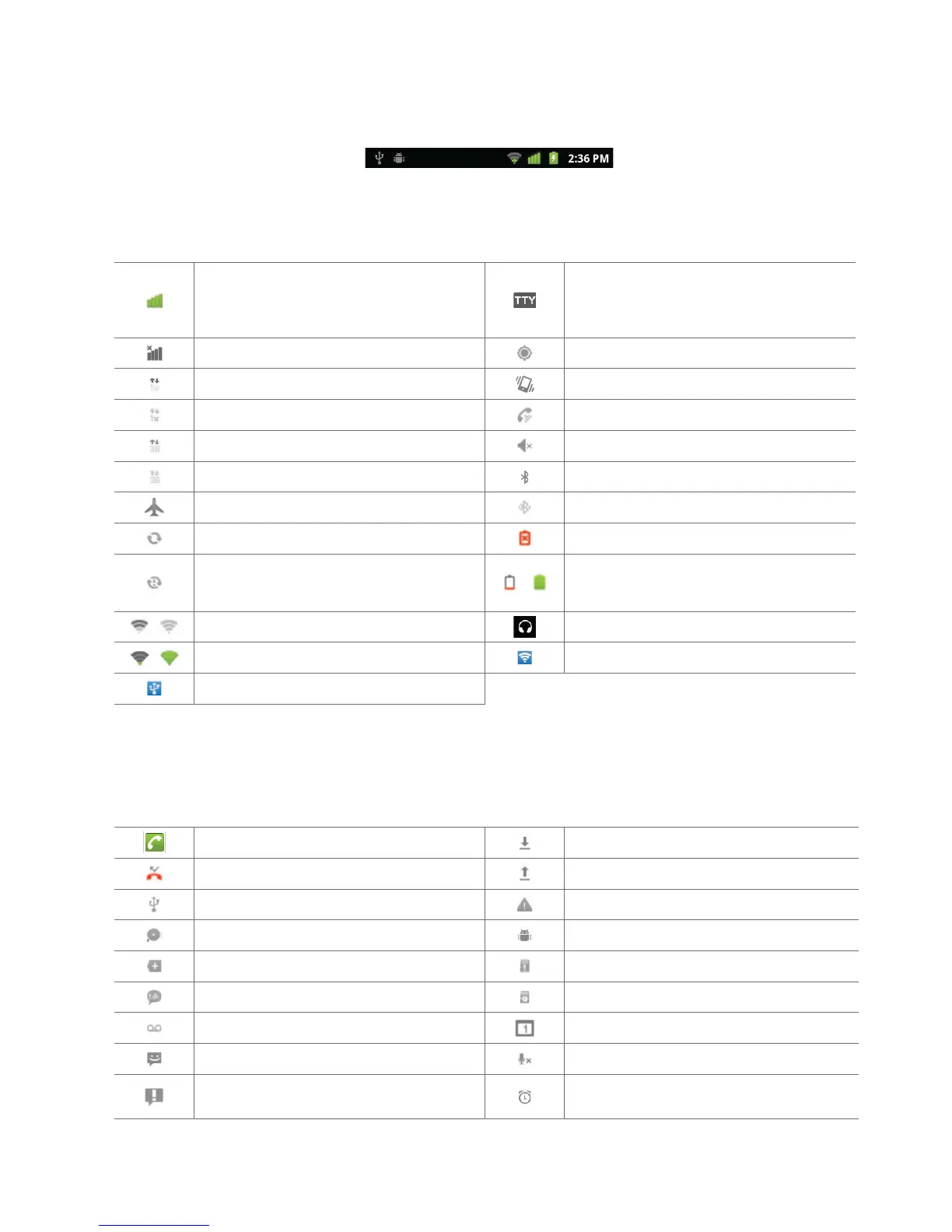 Noti cation icons in the Status bar alert you to items that may require your attention such as new messages,