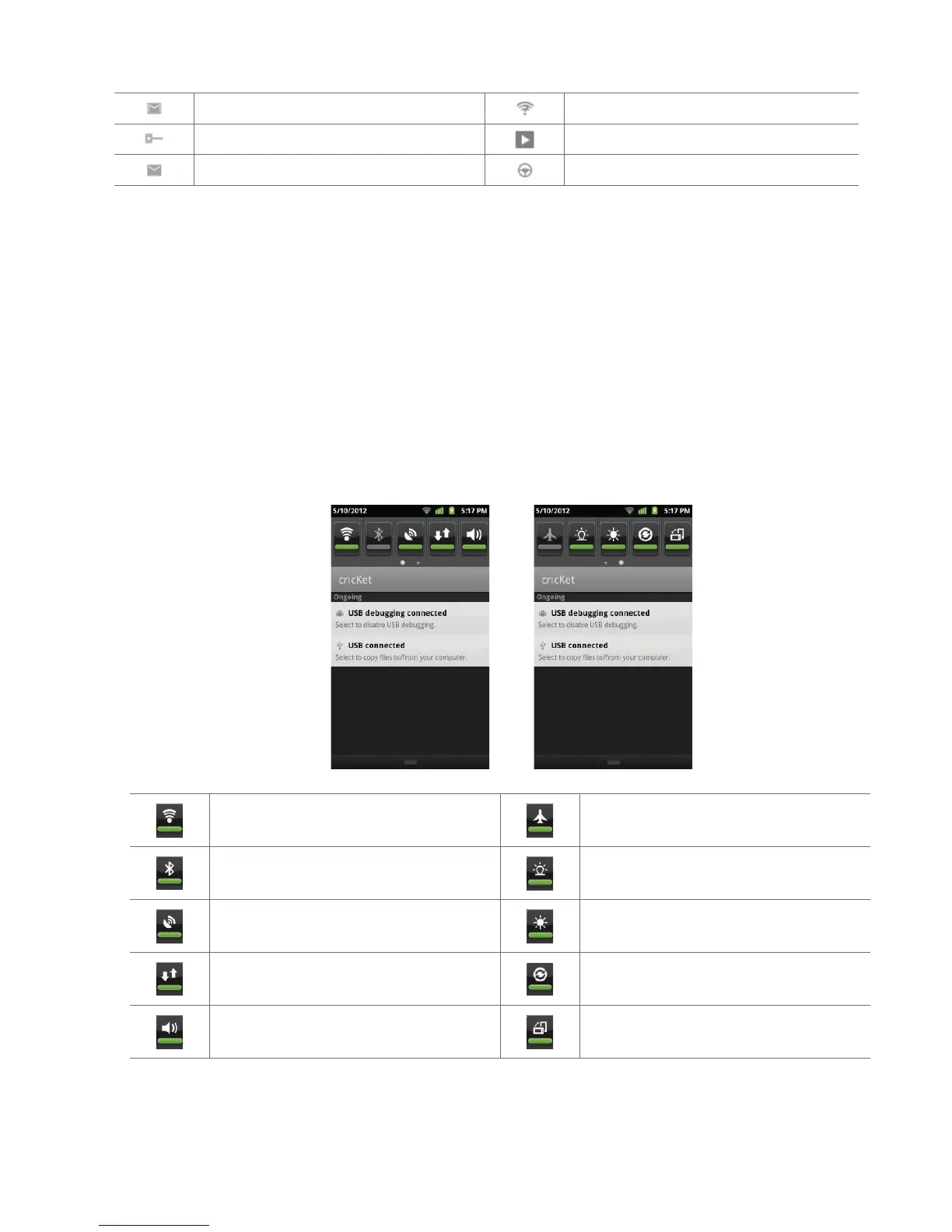 When you receive a new noti cation, an icon will be displayed in your Status bar at the top of your screen.