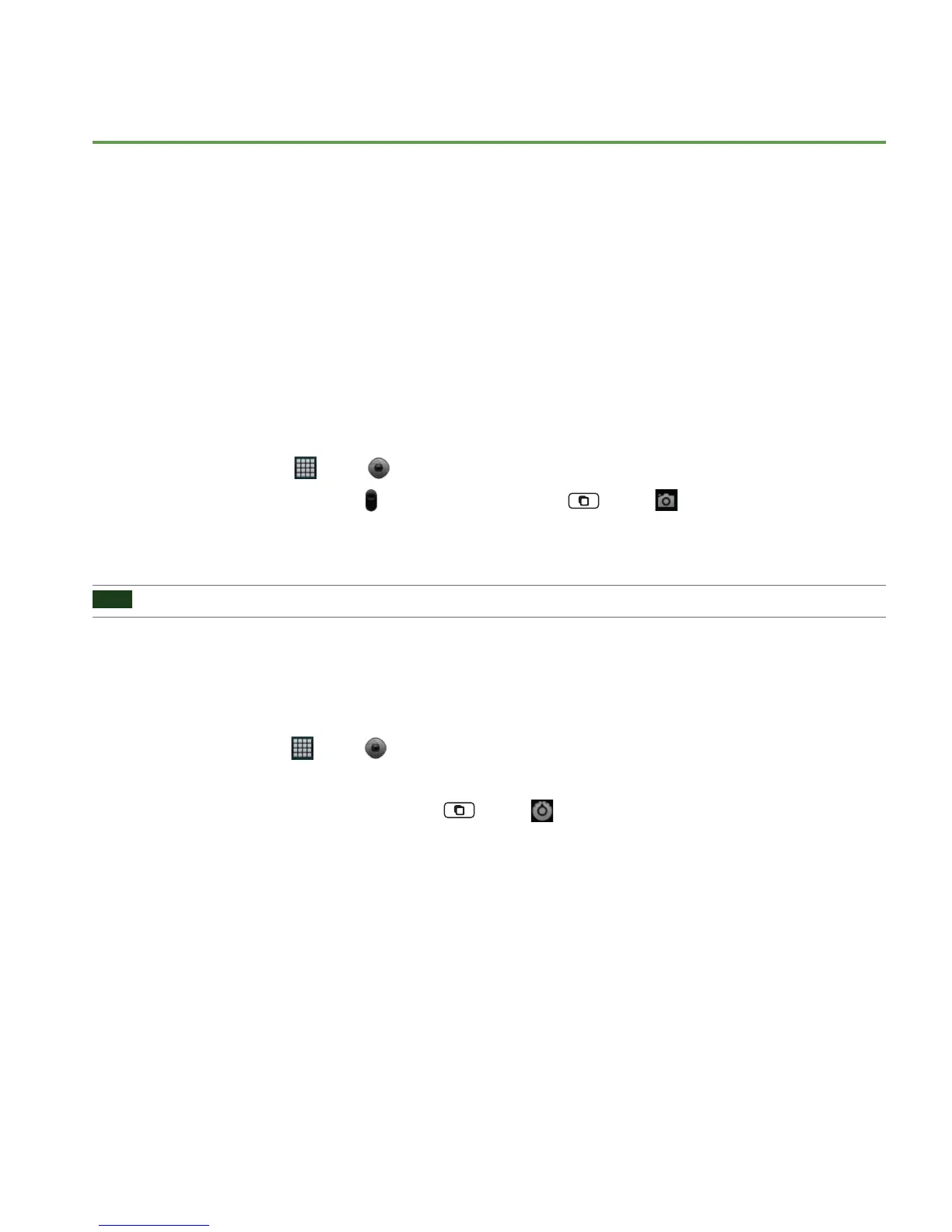 • Or, when in Camcorder mode, drag the to the Camera position. Or, tap Menu > Switch to camera.