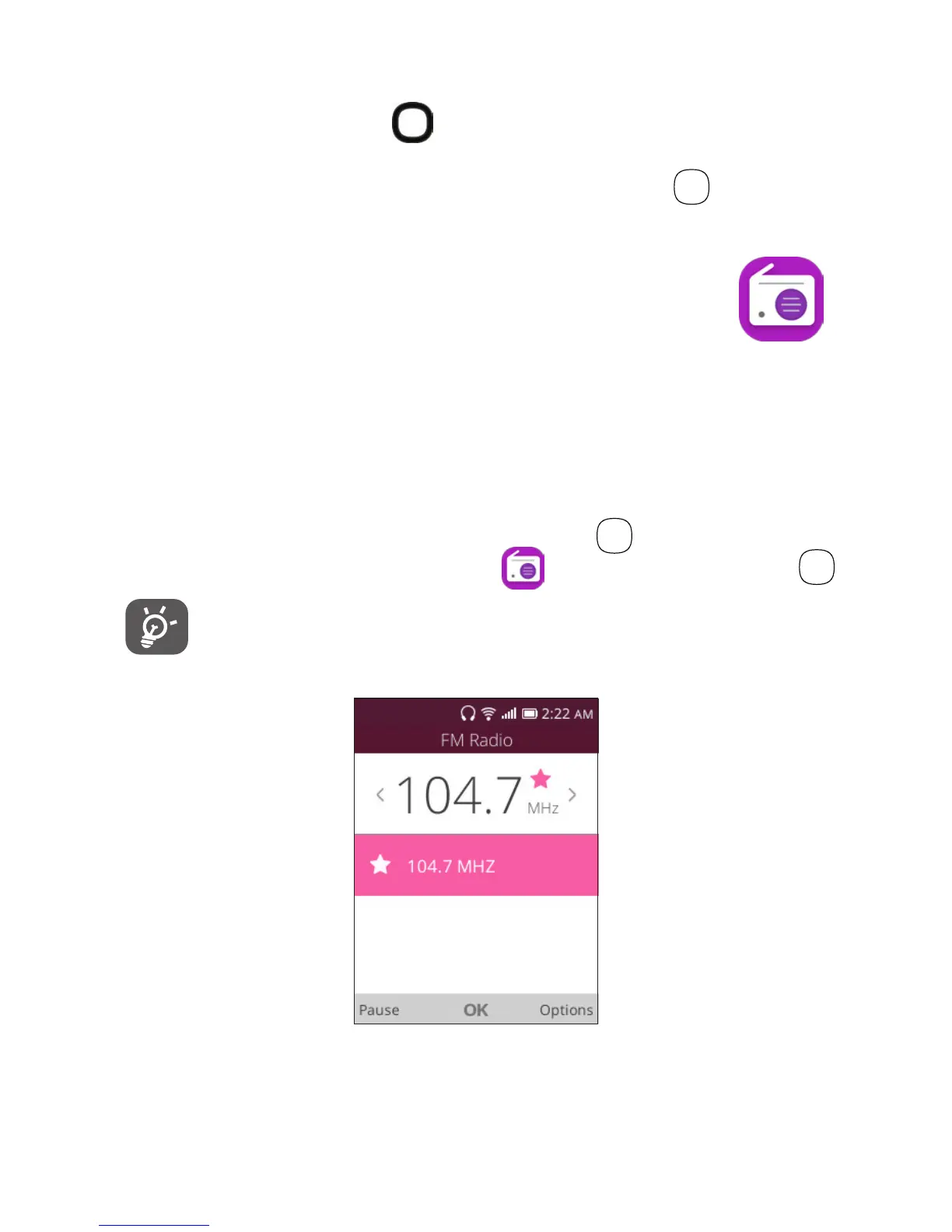 screen, select the FM Radio app and press the OK key