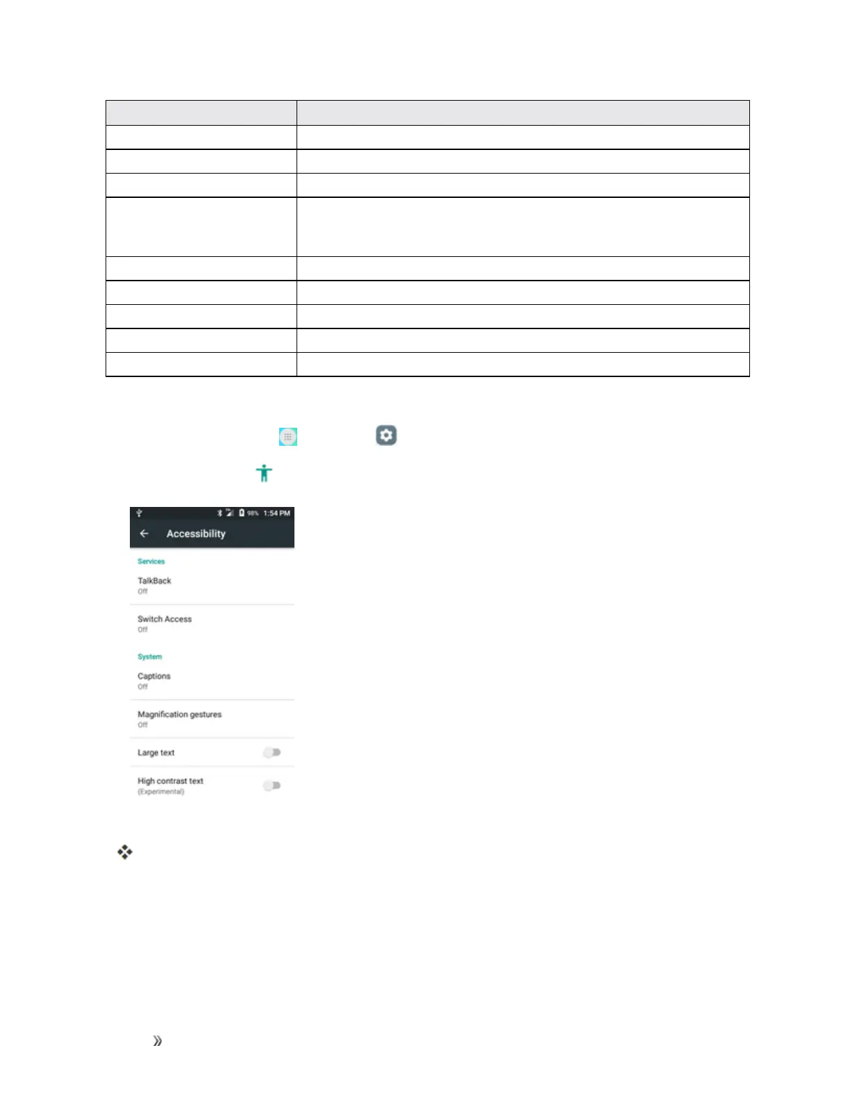 Accessibility shortcut Taptoturnon/offtheAccessibilityshortcut.