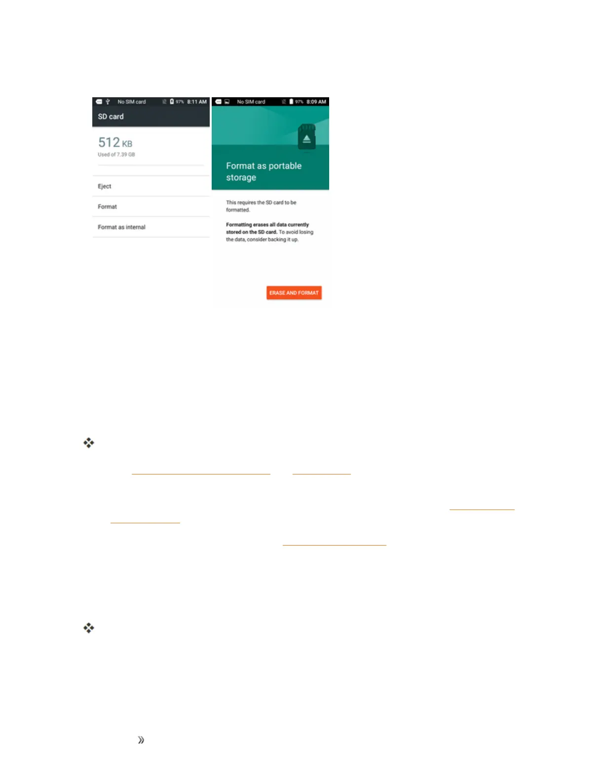 4. TaptoselectFormatorFormat as internal,andthentapERASE AND FORMATtoconfirm.