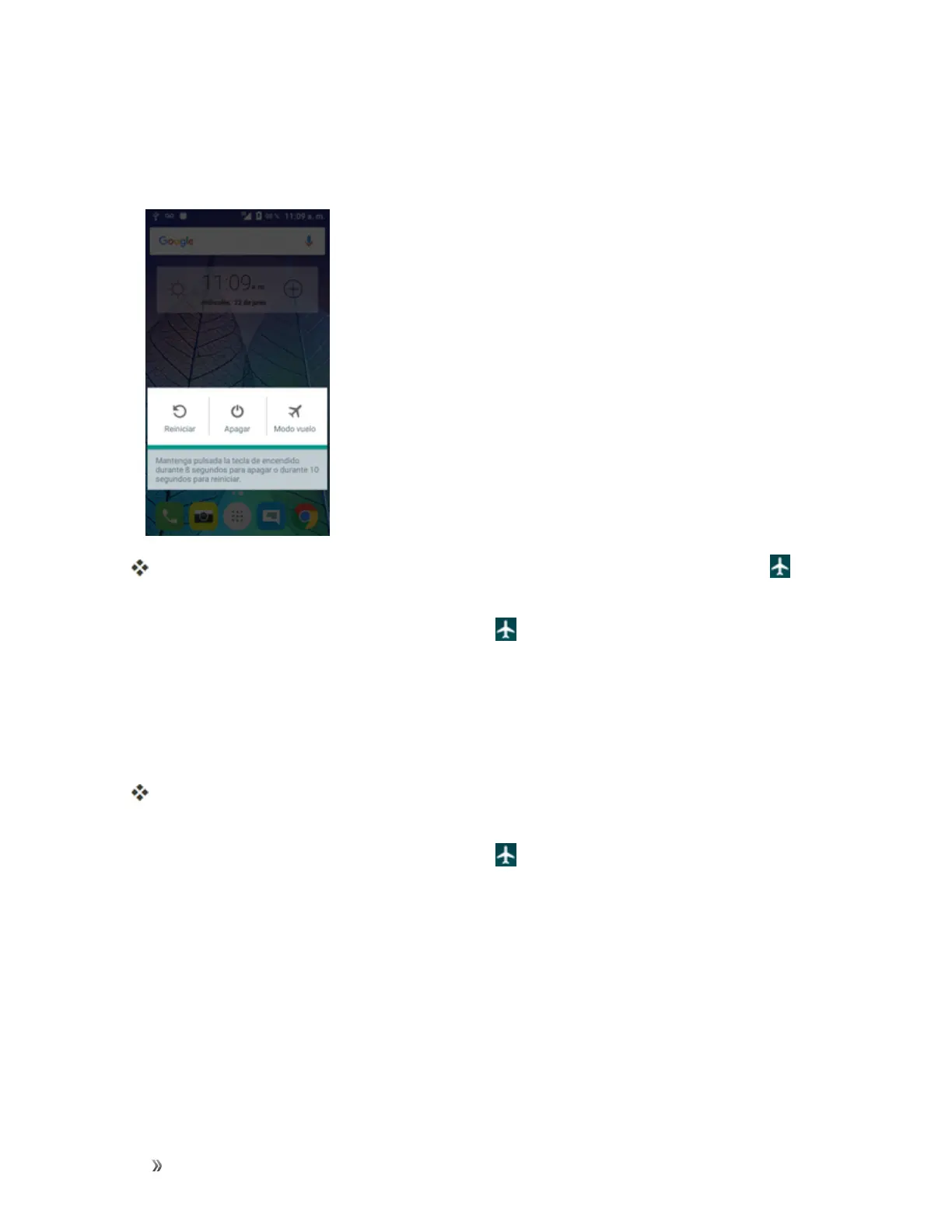 Seactivaráelmodovuelo.Enlabarradeestado,apareceráeliconodemodovuelo .